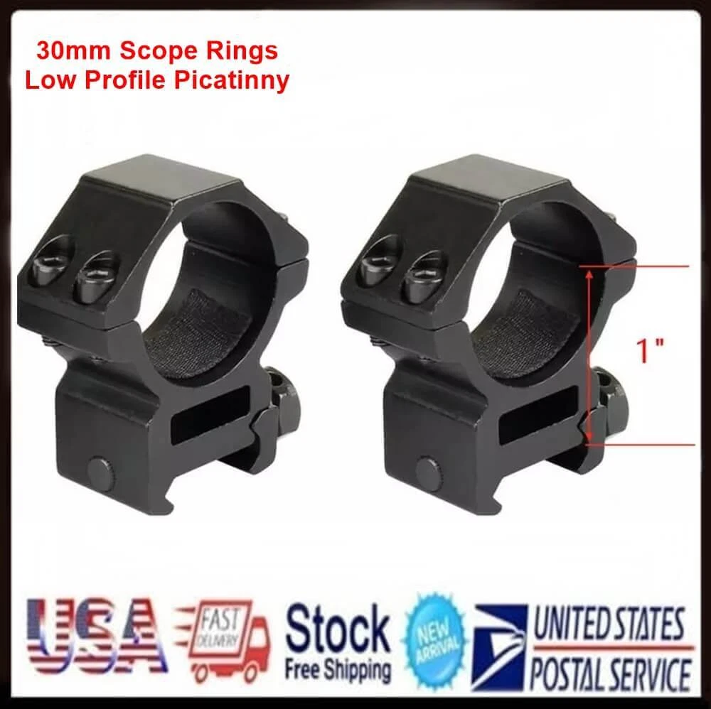 Color: Black UPC: Does not apply For Gun Type: Pistol, Revolver, Rifle, Shotgun Tube Diameter: 30 mm Type: Scope Rings Material: Aluminum alloy MPN: Does not apply Brand: Unbranded Ring Height: Low gtin13: Does not apply Sport/Activity: Hunting Mounting: Picatinny, Weaver For Gun Make: Universal Mounting Location: Rail