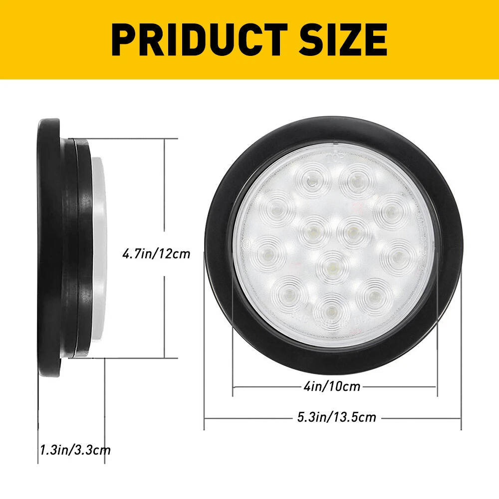 Specification Color: White Voltage: 12V Number of Bulb: 12 LED Material: ABS+PC+Rubber Waterproof rate: IP67 Outer Diameter: 130mm/5.1 inch Inner Diameter: 105mm/4.1 inch Function: Stop/ Turn/ Tail Light/ Backup Reverse light Placement on Vehicle: Front/Rear, Left/Right Suitable model: Universal for Trucks, trailers, tractors, semi-trailer, Dump Truck, bus, boat, special vehicle, and etc. Fits for heavy duty trucks like Peterbilt, freightliner, international ,Kenworth, mack, and so on Wire Connection: Black wire : low brightness Red wire : high brightness White wire : negative pole Pair 4" in White 12 LED Round Tail Rear Stop Reverse Lights 12V Truck Trailer Specification Color: White Voltage: 12V Number of Bulb: 12 LED Material: ABS+PC+Rubber Waterproof rate: IP67 Outer Diameter: 130mm/5.1 inch Inner Diameter: 105mm/4.1 inch Function: Stop/ Turn/ Tail Light/ Backup Reverse light Placement on Vehicle: Front/Rear, Left/Right Suitable model: Universal for Trucks, trailers, tractors, semi-trailer, Dump Truck, bus, boat, special vehicle, and etc. Fits for heavy duty trucks like Peterbilt, freightliner, international ,Kenworth, mack, and so on Wire Connection: Black wire : low brightness Red wire : high brightness White wire : negative pole Features: *High brightness: Each led light has 12 high quality LEDs to output a super bright light, which sealed with a rubber grommet. *Superior material: Durable PC lens with rubber grommet housing welded together to ensure a permanent and water-proof seal. *Waterproof: The tail light is highly silicon sealed with an IP67 waterproof rating, which works even under extreme conditions such as rain and snow. *Easy to install: Come with rubber grommet & plug,drilling and hardwiring are not required *Wide application: Compatible for trucks, trailers, tractors, semi-trailer, Dump Truck, bus, boat, special vehicle, and etc. Fits for heavy duty trucks like Peterbilt, freightliner, international ,Kenworth, mack, and so on Note: Please check the detail information carefully before purchasing Please allow 1-2mm in size measurement chart for variance due to manual measurement Please excuse us from any possible typos and unintentional misinterpretations Your satisfaction is our utmost concern, please feel free to contact us for any questions and concerns Package Include: 2x 4" 12 LED Round Tail Lights Item Specifics Product Name White LED Back up Reverse light Dimension 4 inch Fit for For Pickup,truck trailer,boat,Lorry,Van,caravan Certifications DOT SAE Lens Color White Brand AUXITO Bulb Type LED Back up reverse light Manufacturer Warranty 2 Years Feature For Peterbilt FREIGHTLINER KENWORTH etc. Application Universal For Any 12V Vehicles Heavy Duty Trucks Position Stop Turn Tail Marker Clearance Light Lamp Waterproof IP67 Manufacturer Part Number A3 Placement on Vehicle Front Rear Left Right Inner Outer Fitment Type Direct Replacement Lighting Technology LED Number of Bulbs 2 Light Color Cold White Functions Reverse, Backup, Rear Parking, Tail Light Lamp Type Tail Light Assembly Size (with Rubber Cover) Diameter: 5.3" (13.5cm) Thickness:1.3 (3.3cm) Material ABS Housing, PC Lens, Rubber Cover Voltage 12 V Universal Fitment No Color Temperature 6000K Voltage 12 V FAQ ♥ If you have a decoding problem or any other problems, please contact us first, we will help you with it. We will reply you within 24 hours in working days. I'm a new seller, thanks a lot for your trust and convince! I will serve you with all my heart. ♥ Q1: Will this bulb fit my vehicle? A: We can match almost any vehicle to one of our bulb sizes. eBay only lets us include some vehicle fitments per listing, but if your vehicle does not show up on the compatibility table at the top of our listings, welcome you to contact us for free consulation before purchasing a product. Q2: My item has not arrived, what's taking so long? A: Sometimes items take longer than expected, especially if it’s going far or to rural area. Check with your post office to see if your item has been held up. Sometimes Royal Mail will not update a tracking number until it has arrived at its destination. If your item still don't arrive after a few days, let us know so we can double check for you and help solve it asap. Q3: My bulbs won't fit, help! A: Special bulb holder may be required. See if you can take the holder from the stock bulb. If not, let us know. The bulb size may be wrong, double check the item you received with the item you ordered. Do you have an aftermarket lighting housing? These may not be perfectly fitted for aftermarket bulbs and will require some manual modifications. Q4: Neither side lighting up? Both sides flicker, hyper flash, or work inconsistantly. A:Check the light fuses, and then check the ballast plugs to insure correct installation. If this doesn't work, there may be a voltage problem with the vehicle. You probably just need a relay or capacitor. Even though some bulbs are builtin resistors, they may still need a decoder. Payment (1). We gladly accepts payment via PayPal, We will ship your item(s) within 24 hours. (2). Before payment, please keep the consistency of Paypal address and ebay address. (3). Quantity orders are welcome! Returns (1). We offer 60 days free return policy. Please contact us within 60 days from the date you receive your order if you have any issues with the product or want return. Refund will be send after we got your resend package. (2). All returned items should be in the original packaging , return tracking information should be provided . Contact us (1).Negative feedback will not help resolve any problems you have, please contact us via eBay messages before leaving negative feedback , our customer service will make best effort to help you with the issues. (2).We maintain high standards of excellenceand strive for 100% customer satisfaction! Feedback is very important to us. We request that you contact us immediately before you give us neutral or negative feedback, so that 