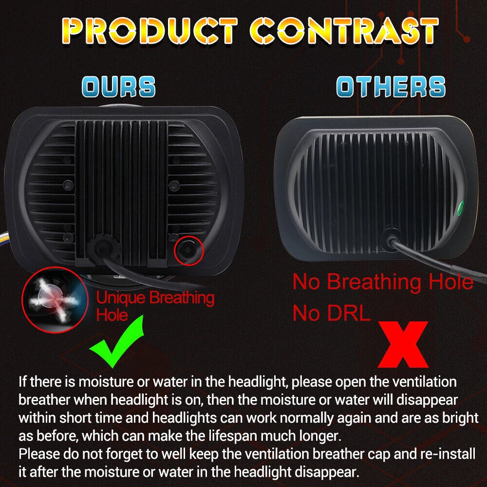 Product information Vehicle Service Type:For Jeep, Chevy, GMC, Ford, TOYOTA, Nissan, Semi-Trucks, various other makes and models Year :2024 Special Feature:High Beam, Low Beam, DRL, Turn Signals Auto Part Position:Front Lens Color:Clear Lens Material:Polycarbonate Special Features:High Beam, Low Beam, DRL, Turn Signals Dimensions: 5x7'' 7x6'' Power: 120W/set Housing Color: Black Beam Pattern: High & Low Beam + DRL + Turn Signal Working Temperature: -40~85 degrees Celsius Operating Voltage: 9-32V DC (fits 12V, 24V vehicles) Waterproof Rate: IP 68 Life Span: 50000Hours Material : Die-Cast Aluminum Alloy Housing with high heat disapation Lens Material: PC Color Temperature: 6500K Package included 2pcs 5X7 led headlights Pair 5x7" 7x6 LED Headlight Hi/Lo Beam DRL For Toyota Pickup 82-95 Tacoma 95-97 Pair 5x7 7x6'' led headlights About this item : DOT approved,legal on the road,simple installation,plug and play,usually in 15 minute Superior Brightness and Driving Visibility :Our headlights provide excellent brightness, ensuring no blind areas and dim spots . Confident driving, knowing that you have the highest visibility on the road. High quality and longevity : Our car lights are manufactured to the highest quality standards and are durable. Durable materials can withstand the test of time, providing reliable lighting year after year and enjoying long-lasting performance. SHINE AND TURN SECURELY - You need proper lighting to stand out when screaming down the road in poor weather. The cold-white DRL and intensified amber turn signals cut through elements to cautiously display intent and help avoid gnarly crashes. KEEP LENS UNCLOUDED - UV radiation takes a toll on the head light bulb enclosure, turning them urine yellow over time. Stay solid and look good with a premium build anti-UV polycarbonate lens. You bet they will stay as clear as the water of Hawaii. Fitment: 5x7 LED Headlights fit any vehicles with 5x7 inch (also known as 7x6) Square Headlights; Super cool upgrade for 86-95 Jeep Wrangler YJ, 79-01 Cherokee XJ, Ford E-series F-series, C4 Corvette, GMC Savana, Dodge W250, etc. (Tips: please consult us if you are not sure whether it fits or not); a few old Japan brand cars need an extra relay kit ) Compatibility with headlights : H6054 H6054LL 6054 H5054 H6014 H6052 6052 6053 69822.Headlamps can fit up to 95% of vehicles, including sedans, light SUVs, 86-95 Jeep Wrangler JK LJ and trucks, motorcycles, 89 chevy k5 blazer, gmc safari 93, w250 dodge, c4 corvette and off-road vehicles. Can be used as low beam or high beam. Pins on plug may need to be moved on some vehicles. You may need to adjust the PINS - use different Ground/Low/High beam positions on the pins Features: Each light has high beam, low beam, daytime running light (white DRL) and amber turn signal light. Easy installation: Plug and Play, the headlights are with standard 3-Pin plug (H4 plug) . IP68 waterproof rate, special heat sink design for efficient cooling dissipation. Breathing Hole is designed to drive away moisture or water, contributing to longer lifespan above 50,000 hours, provide safe and stable light source for your cars or trucks. Compatible with headlights: H6014/H6052/H6054/6054/H5054/H6054LL/69822/6052/6053. Also suitable for most of other vehicles, including sedans,SUVs,1986-1995 Jeep Wrangler YJ and 1984-2001 Jeep Cherokee XJ and trucks, motorcycles, 89 chevy k5 blazer,gmc safari 93,w250 dodge,c4 corvette,1983 Toyota hilux twin cab and all series car and off-road vehicles. Product information Vehicle Service Type:For Jeep, Chevy, GMC, Ford, TOYOTA, Nissan, Semi-Trucks, various other makes and models Year :2024 Special Feature:High Beam, Low Beam, DRL, Turn Signals Auto Part Position:Front Lens Color:Clear Lens Material:Polycarbonate Special Features: High Beam, Low Beam, DRL, Turn Signals Dimensions: 5x7'' 7x6'' Power: 120W/set Housing Color: Black Beam Pattern: High & Low Beam + DRL + Turn Signal Working Temperature: -40~85 degrees Celsius Operating Voltage: 9-32V DC (fits 12V, 24V vehicles) Waterproof Rate: IP 68 Life Span: 50000Hours Material : Die-Cast Aluminum Alloy Housing with high heat disapation Lens Material: PC Color Temperature: 6500K Warranty: 3 Year Warranty Compatible with headlights: H6014 / H6052 / H6054 / 6054 Package included : 2pcs 5X7 led headlights Vehicle Service Type Applications: Models with 5"x7"(7"x6") headlights For example:(Include but not limited) Fit for Jeep Wrangler YJ(1987-1995) Fit for Jeep Cherokee XJ(1984-2001) Fit for Jeep Comanche MJ(1986-1992) Fit for GMC Savana 3500 (1998-2002,2004,2007,2009-2012) Fit for GMC Savana 2500 (1998-2001,2004,2006,2008,2010-2012 ) Fit for GMC Savana 1500 (1998-2001,2003,2005,2007,2009-2012 ) Fit for GMC Safari (1998-2002,2004,2005) Fit for GMC K3500 (1997-2000) Fit for GMC K2500 Suburban (1997-1999) Fit for GMC K2500 (1997-2000) Fit for GMC K1500 Suburban (1997-1999) Fit for GMC K1500 (1997-1999) Fit for GMC C2500 Suburban (1997-1999) Fit for GMC C2500 (1997-2000) Fit for GMC C1500 Suburban (1997-1999) Fit for GMC C1500 (1997-1999) Fit for Ford F250 F350 E150 E250 E350 Fit for Chevrolet Cargo Van Express 1500 2500 3500 Fit for Chevy S10 Sonoma Fit For Chevy Astro Fit for Dodge Ramcharger (1988-1990) Fit for Dodge Ram Pickup (1990-1993) Fit for Dodge W250 (1990-1993) Fit for Dodge Van (1988-1990) Fit for Dodge Ram 50 (1981-1993) Fit for Dodge Omni (1988-1990) Fit for Dodge Colt (1982-1983) Fit for Dodge w250 Fit for Toyota pickup truck Fit for Subaru XT Fit for Nissan Pickup Hardbody 240SX D21 NX Fit for Mitsubishi Mighty Max Mighty Max Fit for Freightliner FL 50 60 70 80 112 Fit for INTERNATIONAL 4700 4900 8100 9900 9900I IX 9200 9400.. Payment Delivery details Return About us Contact us Payment 1. We only accept PayPal as the payment method, which allows you to pay quickly and securely. 2. All products will be sent to your PayPal address. Please make sure your eBay address is correct before placing your order. 3. If you would like to chang