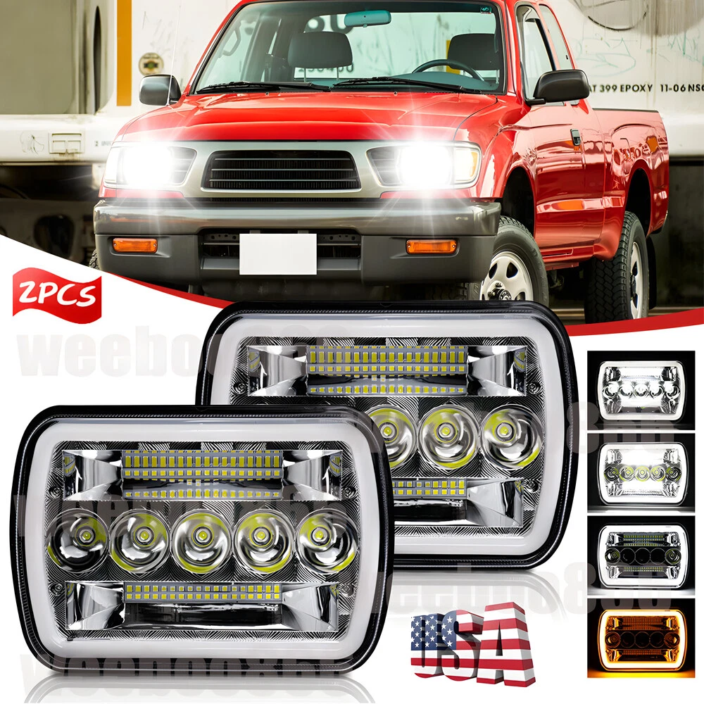 Pair 5x7" 7x6" LED Headlights For Toyota Pickup 82-95 Tacoma 1995-1997 Hi/Lo DRL Features: High and Low Beams : Offers both high and low beam options, ensuring optimal visibility in different driving conditions. White Angel Eyes with Amber Warning Lights : Features white angel eyes and integrated amber warning lights, enhancing the vehicle\\'s appearance while providing clear and effective signaling for improved road safety. Extremely Bright : Delivers high-intensity light output, ensuring excellent road illumination and enhanced visibility in all conditions. Integrated Spot and Flood Beams : Combines spot and flood beam patterns to provide superior road coverage and optimal lighting distribution. Excellent Road Coverage : Ensures an exceptional blend of spot and flood beams, providing well-distributed illumination for safe driving. Durable Construction : Made with high-quality materials to withstand harsh weather conditions, ensuring long-lasting performance. Easy Installation : Designed for a simple plug-and-play setup, making installation quick and hassle-free. Specifications: Condition: 100% Brand New Color Temperature: 6500K White Function: DRL + Amber Turn Signal Light + Hi/Lo Beam Power: 120W(High Beam), 70W(Low Beam), 20W(White DRL), 20W(Amber Turning Light) Lumen: 12000LM-High Beam, 7000LM-Low Beam Working Voltage: 9-32v Number of Bulbs: 2 Waterproof Rate: IP68 Working Temperature: -40℃ - +80℃ Beam Type: High Beam/ Low Beam Lifespan: Over 50,000 hours Fitment Type: Direct Replacement Placement on Vehicle: Front, Left, Right Package Included: 2PCS 7x6\\'\\' 5x7\\'\\' LED Headlights Fitment: Fit but not limited: Any other car H6054 H6014 H6054LL 69822 6052 6053 with 5"x7" OR 7"x6" Rectangular Headlight Fit For any Vehicle with 5x7 inches (also known as 7x6) Headlights ,such as: Fit For Jeep Wrangler YJ 1987-1995 Fit For Jeep Cherokee XJ 1984-2001 Fit For Jeep Wrangler MJ Comanche 1986-1992 Fit For GMC Savana 3500 1998-2002, 2004, 2007, 2009-2012 Fit For GMC Savana 2500 1998-2001, 2004, 2006, 2008, 2010-2012 Fit For GMC Savana 1500 1998-2001, 2003, 2005, 2007, 2009-2012 Fit For GMC Safari 1998-2002, 2004, 2005 Fit For GMC K3500 1997-2000 Fit For GMC K2500 Suburban 1997-1999 Fit For GMC K2500 1997-2000 Fit For GMC K1500 Suburban 1997-1999 Fit For GMC K1500 1997-1999 Fit For GMC C2500 Suburban 1997-1999 Fit For GMC C2500 1997-2000 Fit For GMC C1500 Suburban 1997-1999 Fit For GMC C1500 1997-1999 Fit For Ford F-550 Super Duty, Ford F-450 Super Duty, Ford F-350 Super Duty, Fit For Ford F-250 Super Duty, Ford F-250, Ford F-150, Ford E-450 Super Duty, Fit For Ford E-350 Super Duty, Ford E-350 Econoline Club Wagon, Ford E-350 Econoline Fit For Ford E-350 Club Wagon, Ford E-250, Ford E-150 Econoline Club Wagon, Fit For Ford E-150 Econoline, Ford E-150 Fit For Chevrolet Express 3500, Chevrolet Express 2500,Chevrolet Express 1500, Chevrolet Astro Fit For Chevy S10 Pickup 82-94 Fit For Toyota Pickup 1986-1992 ,Toyota MR2,Toyota Celica,Toyota Supra,Nissen