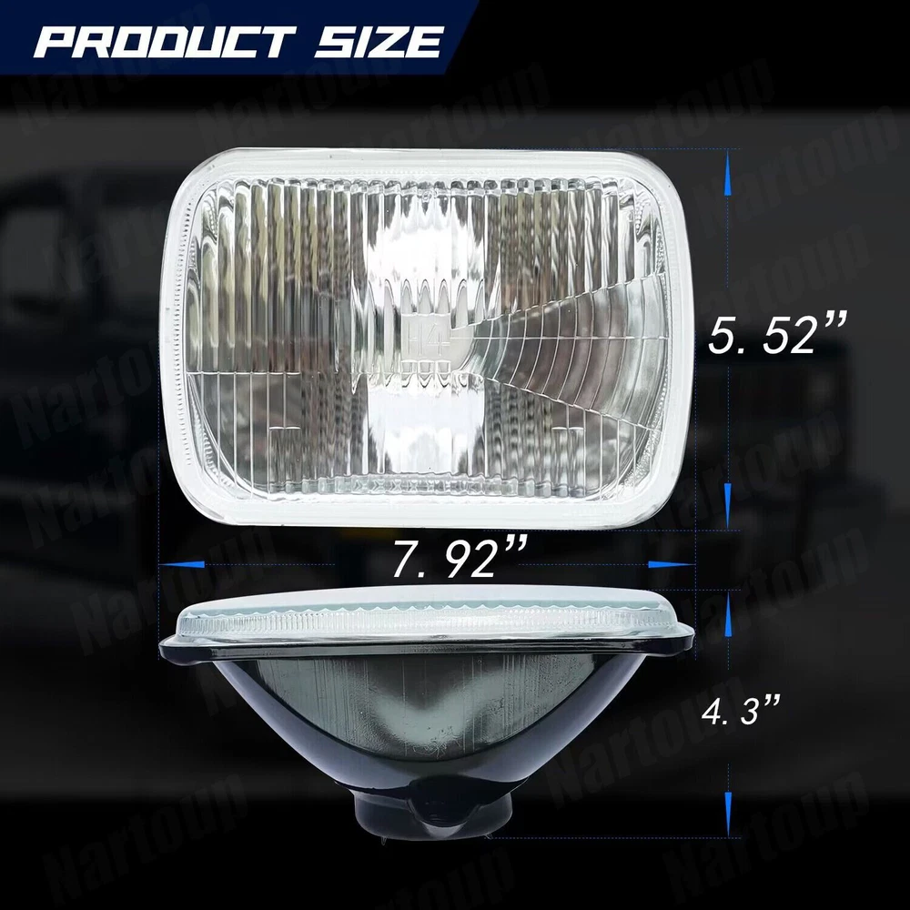 Nartoup - 7"x6" Stock Style H4 Headlights 200w/ LED Bulbs - Pair THESE ARE H4 CONVERSION HEADLIGHTS WITH A STOCK STYLE GLASS LENS AND METAL HOUSING! INCLUDES (2) HIGH INTENSITY LED H4 XENON WHITE LIGHT BULBS! 5X7 7X6 INCH SQUARE HEADLIGHT - PAIR CRYSTAL CLEAR GLASS LENS / METAL BACKSIDE FITS STOCK BUCKETS WITHOUT MODIFICATION PLUGS INTO FACTORY WIRING PLUGS LOW BEAM AND HIGH BEAM BULBS ARE REMOVABLE AND REPLACEABLE 100W LED BULBS INCLUDED PLUG AND PLAY DOT / SAE APPROVED This listing is for a new pair (2 bulbs right & left) 7x6" 5X7"diamond crystal clear semi-sealed beam glass lens / metal housing headlights. These headlights have a clean custom look but fit into the stock buckets and plug into the stock wiring without modification. ( Or some models need to be modified) These light up in a similar color as the original headlights. These have the original 3 prong plug design on the back so they will plug directly into the original wiring harness. These will fit any car or truck that has 2 rectangle glass headlights that are 7x6 inches. These are glass faced headlights with a metal backside. We will take extra care in packaging. Specifications: * Brand:Nartoup * Condition: 100% Brand New * Light Source:2 Sides COB LED * Material: Aviation Aluminum + ABS * Color Temperature: 6000K-6500K * Working Voltage: DC 9-32V ( Fit 12V,24V Vehicle ) * Output Power (Each): 100W * Number of Bulbs: 2 * Waterproof Rate: IP68 * Luminous Flux: 10000lm/Bulb * Working Temperature: -40℃ - +80℃ * Bulb Type: H4 * Beam Type: High Beam/ Low Beam * Beam Angle: 360 Degrees * Lifespan: Over 50,000 hours * Heat Dissipation Principle: Heat Pipe Technology + Aluminum Radiator * Fitment Type: Direct Replacement * Placement on Vehicle: Front, Left, Right * Color: As the picture shows Package include: 2pcs 7Inch Led headlights Housing 2pcs H4 LED Bulbs 2PCS H4 9003 to H13 9008 Connectors Cable Adapters Harness Note:No mounting bracket. New boxes and old boxes are sent randomly!!! After service Notification: If you are satisfied with our product and service please leave us a positive feedback,if there is any problem when you received the package,please feel free to contact us,we will be definitely give you a satisfying solution,when you choose the return reason .please choose the reason"i don't like it". By this option we will accept your return immediately and provide return label for full refund. the others reason to return will take both of us many troubles to handle. If you have any questions, please feel free to contact us, we are happy to answer them for you. Hope you will have a good shopping experience~
