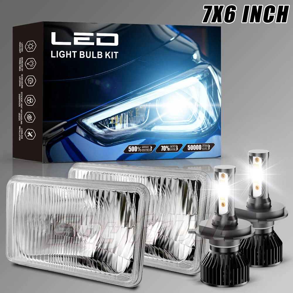 Pair 5x7" 7x6" LED-Headlights DRL For Ford E-150 E-250 Econoline Van Club Wagon