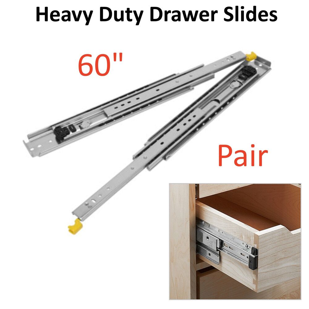 Pair 60" 500lbs Heavy Duty Drawer Slides Full Extension Ball Bearing w/ Lock USA