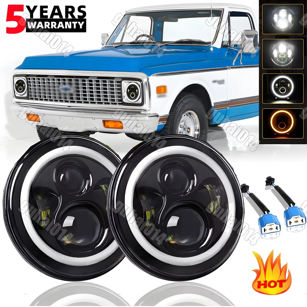 Pair 7" Round LED Headlight Hi-Lo Beam Fit Chevy C10/20/30 Pickup LUV Nova Vega