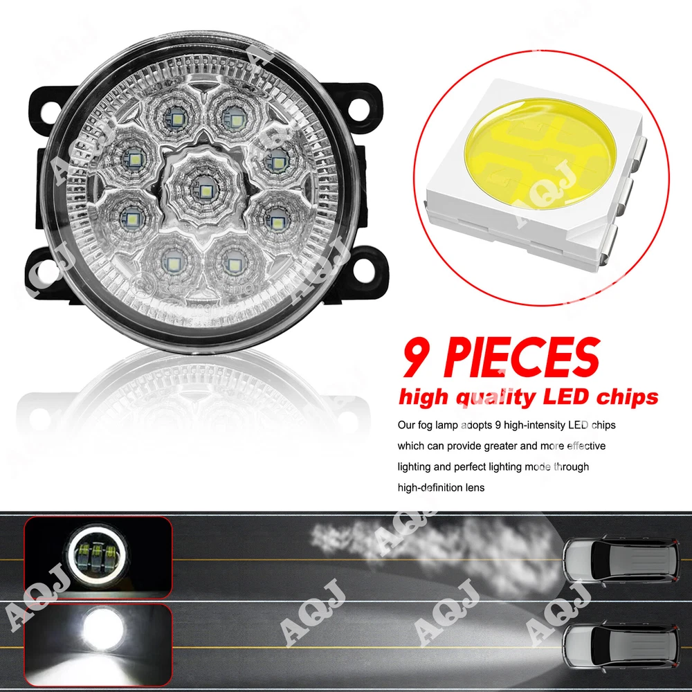 Interchange Part Number: H11 Fog Light Type: Front Fog Light Beam Type: FOG LIGHTS Fog Light Type: 3.5" Round,Black inner bezel Reference Number3: for Nissan vehicles using part#26154-EA500 84501AJ00A UPC: 989985538770 Reference Number4: for Ford/Lincoln vehicles using part#4F9Z15200AA 3225-2050B Reference Number5: for Subaru vehicles using part#H451SAJ100 gtin13: 989985538770 Item Length: 11CM Lighting Technology: LED Item Width: 8.5CM Color: White Fitment Type: Direct Replacement Manufacturer Part Number: H11 Fog Light Power: 55W Country/Region of Manufacture: United States Current: 20A Reference Number: 33900STKA11 4F9Z15200AA XR837532 H451SAJ100 84501AJ00A Brand: AQJ Other Part Number: For Car/Auto/SUV/Off Road/Pickup/MPV/RV/Vehicle Reference Number2: for Jaguar vehicles using part#XR837532 Lumens: 6000 lm Voltage: 12V Material: PPT Reference Number1: for Acura/Honda vehicles using parts#33900STKA11 Light Color: Cold White Reference Number6: for Suzuki vehicles using part#990E0-65J36-000 Finish: As Pictures Shown Item Diameter: 9CM Note: The box is sent ramdomly