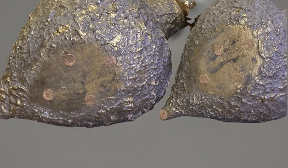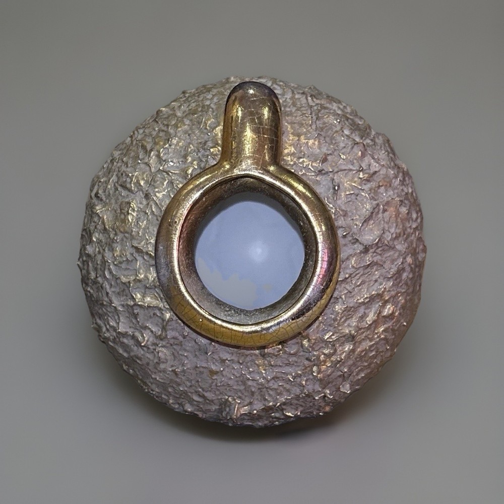 Pair of large sculptural ceramic vases featuring a striking brutalist design with heavily textured stoneware bodies and metallic gold glazed handles. Each vase is solid and substantial, with an angled neck and hollow interior, designed to rest on a diagonal for a bold, modern presentation. These pieces have wonderful presence and work beautifully as statement décor on a console, shelf, or tabletop. Both vases are in very good overall condition. Upon close inspection, there are a few extremely minor edge flecks typical of stoneware production and handling, but nothing that detracts from their appearance. They display beautifully. Approximate measurements: Larger vase: about 14” x 10” Smaller vase: about 11” x 8” ✨ Thank you for taking a look! If you think this could be your next purchase, don’t hesitate to make an offer — I truly enjoy connecting special treasures with the people meant to have them. ✨ Your item will be carefully packaged to ensure it arrives safely. Buy with confidence — I’m proud to maintain 100% positive feedback!