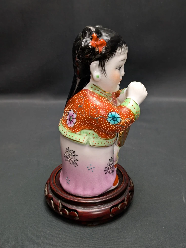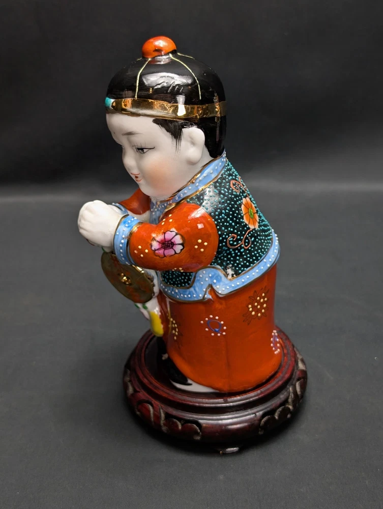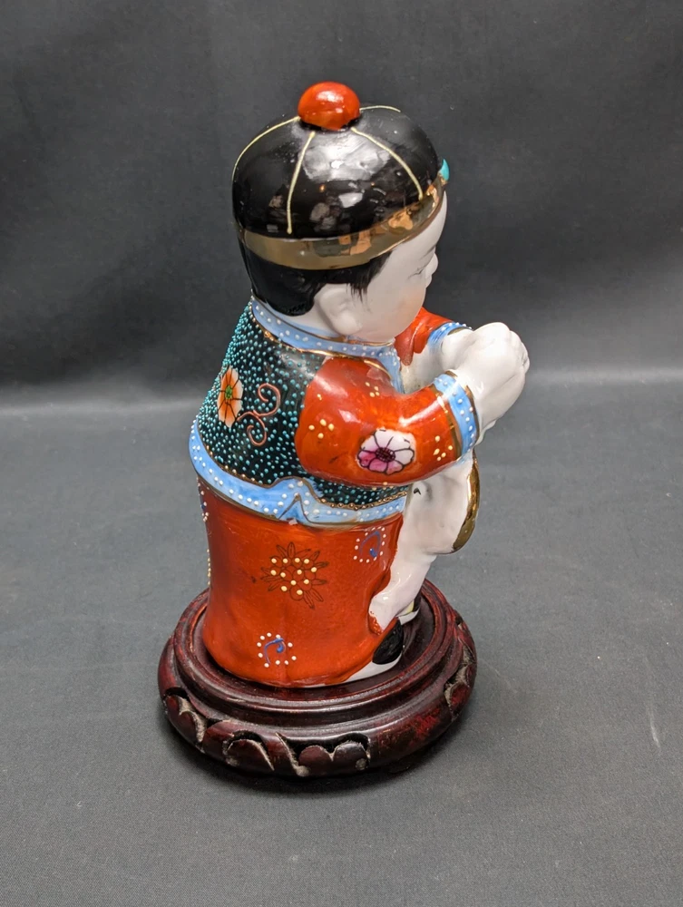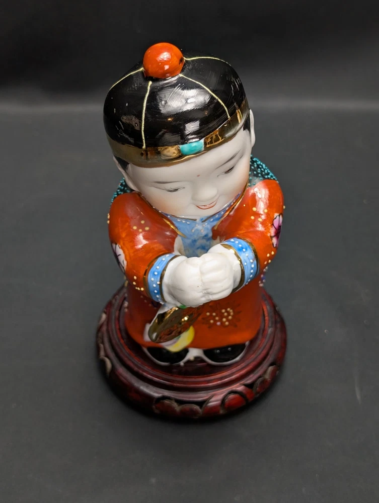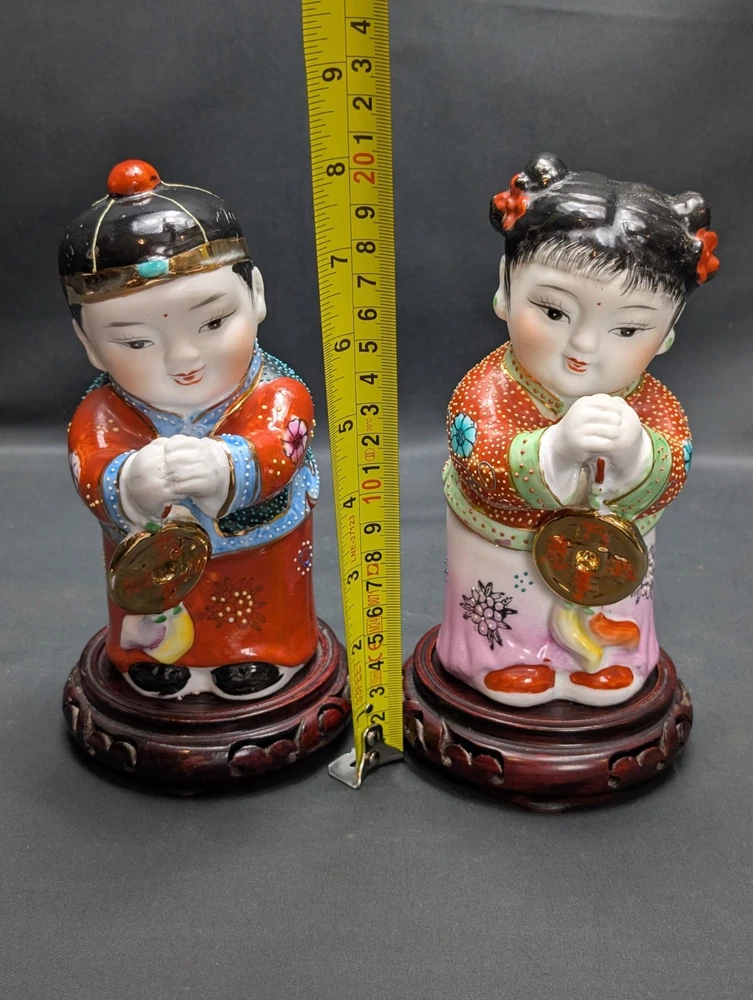 Pair of Chinese porcelain figurines depicting Jintong and Yunu (Golden Boy and Jade Girl), traditional Chinese symbols of harmony, prosperity, and good fortune. In the UK these are often described as Chinese good luck figures or boy and girl prosperity figures. The figures are decorated in bright enamel colours with gilt detail and are dressed in traditional costume, each holding a symbolic coin plaque associated with wealth and good fortune. Both figures are mounted on their original carved wooden stands. The porcelain bases feature factory vent holes typical of Chinese export porcelain. The wooden stands retain a Made In China label, indicating late 20th century manufacture. Condition is great overall with no cracks or repairs observed. Minor surface wear consistent with decorative use. A decorative and symbolic pair of Chinese export figurines, suitable for display in the home or as traditional good luck ornaments. Please inspect the photos to check the quality/condition for yourself. PLEASE READ THE BELOW CAREFULLY IN REGARDS TO ALL USED ITEMS IN OUR STORE. Most of our items are in used condition with some wear from general use and as such, they may show some marks. Please ensure you examine the pictures as we aim to capture any considerable marks/damage in images and we will only sell items we consider to be usable. The pictures allow you to inspect the finer detail and quality of the product before purchasing, zoom in for further inspection. Please ensure you're happy with measurements shown in photos as some items may appear bigger than real life due to close-up shots. Vintage electronics sold as "working" are tested and functional at time of listing, but may require future maintenance or component replacement due to their age. Items listed as "spares & repairs" are sold for parts/restoration and functionality is not guaranteed. No warranty provided on continued functionality for any vintage electronics. Some electronics may have security stickers placed over access screws to prevent tampering. If these stickers are removed or tampered with, no refund will be given. Rest assured, refunds are available under normal circumstances as outlined below. Items are sold as-is based on photos and description. We accept returns for change of mind or if the item differs from what was described or pictured - please see our returns policy for full details. From a smoke and pet free home. Some items may require cleaning before use, we clean what we reasonably can but recommend inspection upon receipt and clean if necessary. Items do not come boxed or with certificates unless stated otherwise in our descriptions. Questions are welcomed before purchase if you need any additional details or clarification. Please choose your preferred postage courier at checkout - we offer Evri & Royal Mail. Where possible we try to use recyclable materials for packaging. We may also choose a different service or courier depending on your location, item value, and package size. Feel free to contact us if you need to discuss postage options. We have many more items in our store, from pottery, glassware, cameras, vintage, antiques, clothing, trainers and much more. Feel free to check it out. Thank you from the Basement Hoarders team.