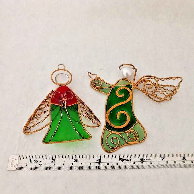 Capture the essence of the holiday spirit with this charming pair of Christmas Angel Ornaments. Boasting a beautiful stained glass style, these unbranded suncatchers add a touch of celestial beauty to your festive décor. Their vibrant green and red colors are sure to complement your holiday color scheme, making them a perfect addition to your Christmas tree or a thoughtful gift for someone special. Each ornament ranges in length from 4 to 5 inches, offering a delicate yet noticeable accent to your seasonal decorations. Whether you're an avid collector of angel-themed items or simply seeking to infuse your home with the peaceful vibe of angels, these ornaments will gracefully fulfill your desires. Celebrate the season with these serene and stylish angelic adornments.