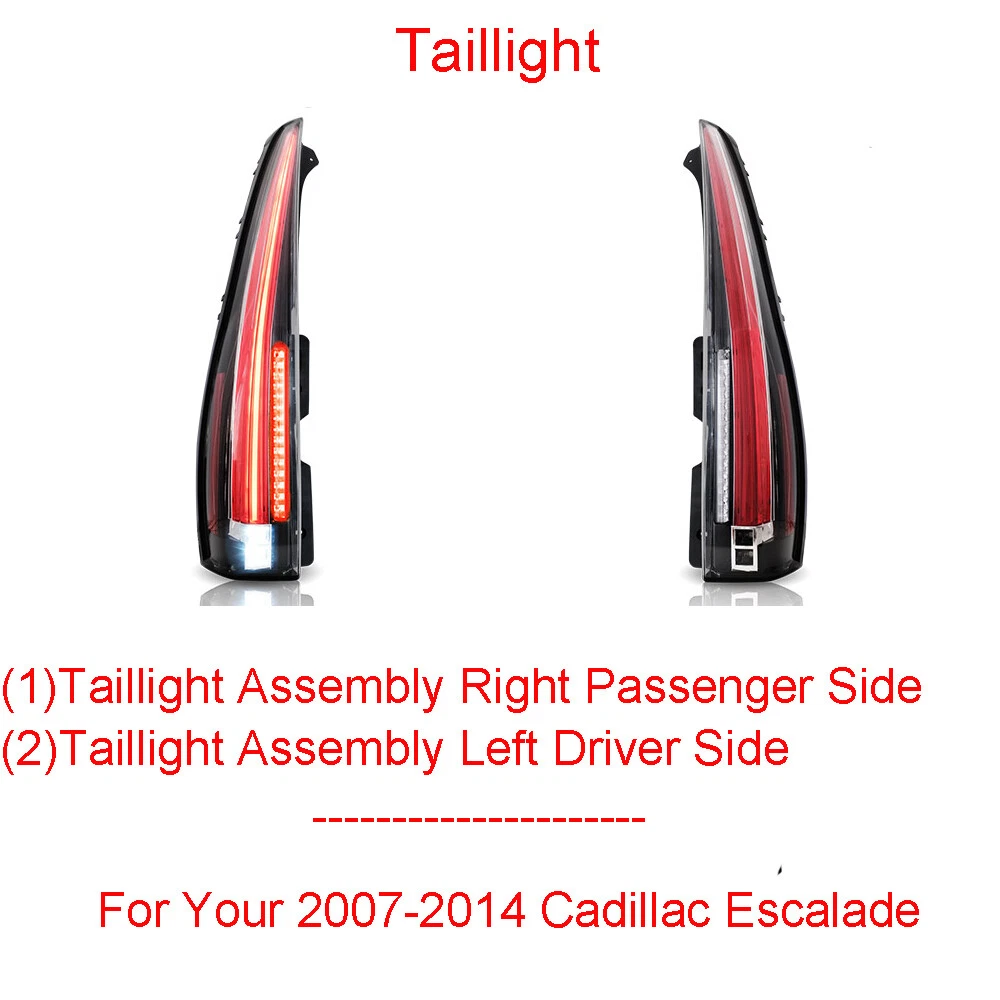 Pair Clear Tinted LED Tail Lights Rear Lamp For Cadillac Escalade 2007-2014 Part #: GM2800232, GM2801232 INCLUDES: (1) Tail Light Assembly Halogen Left Driver Side (1) Tail Light Assembly Halogen Right Passenger Side VEHICLE APPLICATION SHIPPING & RETURN WARRANTY VEHICLE APPLICATION Fitment 2007-2014 Cadillac Escalade, Escalade ESV Not Fit 2007-2013 Escalade EXT And GMC Yukon & Chevrolet Tahoe, Suburban SHIPPING & RETURN Shipping Information - Policy The goods will shipped by the eBay address, so please leave the right address on eBay Please, choose some local sellers, If you cannot wait patiently in the shipping time we declared. Once you purchase, please DON’T leave negative or neutral feedback if you haven't received item in 30 days, because we have mentioned the shipping time repeatedly. If you not satisfied with the goods please contact us before leave the feedback, we will try ourbest to satisfy you. Standard Order Processing time: W e'll update you when proceeding with your order from (Monday - Friday). Payment cleared/received on Friday will be shipped on the next business days (Monday or Tuesday). We are not responsible for carrier transit time. This information is provided by the carrier and excludes weekends and holidays. Note that transit times may vary, particularly during peak periods or in climate weather conditions, and that delivery times frames will need to be extended for any processing time frames in excess of 2-3 business days. WARRANTY Standard Replacement Specifically excluded from this warranty are failures caused by misuse, negligence, modification, abuse, improper application, installation or operation, or by unauthorized service or use of unauthorized parts in connection with the product and inadequate maintenance, normal wear and tear or normal consumption of the product. One time replacement Customers are responsible for the return shipping cost on warranty claims. We will refund you the money you paid for the parts less shipping and handling charges Please Note: - We also have more models available, please contact us if you can't find your specific model. - When products are noted in the description as out of stock, these products will then be offered as pre-sale items, normally they will be posted within 20 days from the date of cleared payment. - Item sold in a pair (left and right), bulbs may or may not be provided. On Dec 5, 2024 at 00:15:47 PST, seller added the following information: