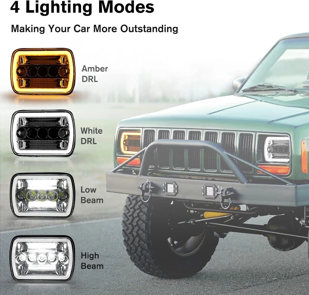 Pair 5x7" 7x6" LED Headlights Hi/Lo Beam DRL For Chevy Features: 1. Hottest 7x6 5x7 inch led headlight. With Newest 120W Powerful LED chips, much brighter and durable than stock headlight or other headlights. 2. Three Light Mode: High Beam, Low Beam, DRL, 3. Super bright. 8250LM@high beam, 4250LM@low beam, 6000K-6500K Pure white light. Helps to reduce traffic accidents cause by bad weather or adverse road condition. Ensure driver\\'s safety. 4. Diecasting aluminum alloy shell is not easy to deform and will improve cooling performance. Surface electrostatic prevention, with EMC: Anti-electromagnetic interference. 5. Shock-proof and Waterproof IP67, Upgraded cooling system,More than 80,000 hours lifespan, Totally Risk-free under LIFETIME WARRANTY. 6. Easy to Install: Standard H4 socket, Just Plug and Play, connect the extend DRL wire with your car\\'s ACC. The anti-flicker is integrated with circuit board. Perfectly avoid flickering. 7. Certifications: CE, RoHS, ISO9002, DOT, SAE, IP67 Approved. 8. The cutoff is very shrill and straight, No Blind Area and dim spots. It won\\'t blind other drivers like other headlights. Specification: Type: Square Type Sealed Beam Lamp Size: 7x6\\'\\', 5x7\\'\\' Lighting Technology: LED Housing Color: Black Voltage: 10V-30V Light output: 8250LM high beam, 4500LM low beam LED Light Mode: High Beam/Low Beam/DRL/Turn Signal Light Power: High Beam(60W)/Low Beam(40W)/DRL(10W)/Turn Light(10W) Life span: Up to 70,000 hours Waterproof Rating: IP67 Material: Die-cast aluminum Lens Material: Clear PMMA Lens Itment Type: Direct Replacement Compatible with headlights: H6014 / H6052 / H6054 / 6054 Package Contents: 2x 7x6" 5x7" inch LED Headlights (Not including H4-H13 Adapter) Note: 1. Please confirm if the headlight fits your vehicle before purchasing. 2. Professional installation is strongly recommended in case of any difficulty in installation. 3. Please check whether the headlight is firmly installed before driving to ensure driving safety. 4. The picture may be a little different from that of real item due to the different display and different light. 5. If you have any questions about the product, please contact us. If you suffer from problems, such as dim headlights, malfunctioning headlights, or PINs on your vehicle are not standard, please purchase H4 9003 wiring harness. Our listing NOT INCLUDE. Fitment: Any other car H6054 H6014 H6054LL 69822 6052 6053 with 5"x7" OR 7"x6" Rectangular Headlight Fit For any Vehicle with 5x7 inches (also known as 7x6) Headlights,such as: For Jeep Models with 5"x7"(7"x6" ) Headlights. for Jeep Wrangler YJ 1987-1995 for Jeep Cherokee XJ 1984-2001 for Jeep Comanche MJ 1986-1992 Compatible with Headlights: H6014 / H6052 / H6054 / 6054 Some vehicles such as For Toyota may need to move the pins on the headlamp plug to different position.(or a adapter) For Dodge Models with 5"x7"(7"x6" ) Headlights. for Dodge Ramcharger 1988-1990 for Dodge Ram Pickup 1990-1993 for Dodge W250 1990-1993 for Dodge Van 1986-1993 for Chevy Silverado 1985-1987 for Dodge Ram 50, Omni, Colt, Caravan, Aries For Chevy Models with 5"x7"(7"x6" ) Headlights. for Chevrolet Astro for Chevrolet Tahoe, Tahoe S10 for Chevrolet S10, S10 Blazer, S10 Pickup( 1982-1994) for Chevrolet K1500, K2500 Suburban for Chevrolet Express 1500, 2500, 3500 for Chevrolet C1500 Suburban, C2500 Suburban for Corvette, Colorado For GMC Models with 5"x7"(7"x6" ) Headlights for GMC Savana 3500 ( 1998-2002, 2004, 2007, 2009-2012) for GMC Savana 2500 ( 1998-2001, 2004, 2006, 2008, 2010-2012 ) for GMC Savana 1500 ( 1998-2001, 2003, 2005, 2007, 2009-2012 ) for GMC Safari ( 1998-2002, 2004, 2005 ) for GMC K3500 ( 1997-2000 ) for GMC K2500 Suburban ( 1997-1999 ) for GMC K2500 ( 1997-2000 ) for GMC K1500 Suburban ( 1997-1999 ) for GMC K1500 ( 1997-1999 ) for GMC C2500 Suburban ( 1997-1999 ) for GMC C2500 ( 1997-2000 ) for GMC C1500 Suburban ( 1997-1999 ) for GMC C1500 ( 1997-1999 ) For Ford Models with 5"x7"(7"x6" ) Headlight for Ford F-150 for Ford F-250, F-250 Super Duty for Ford F-350 Super Duty for Ford F-450 Super Duty for Ford F-550 Super Duty for Ford E-150, E-150 Econoline, E-150 Econoline Club Wagon for Ford E-250 for Ford E-350 Super Duty, E-350 Econoline Club Wagon, E-350 Econoline, E-350 Club Wagon for Ford E-450 Super Duty For Mazda Models with 5"x7"(7"x6" ) Headlights for Mazda B2000 B2200 B2600 RX-7 GLC For Toyota Pickup,for Toyota MR2,for Toyota Celica,for Toyota Supra,for Nissan 240SX