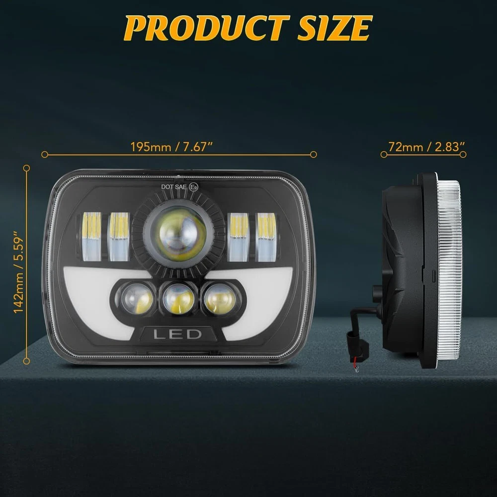 Notes: 1. Please check whether it is fit your vehicle before purchase. 2.The compatibility table is only for reference, please make sure to verify the bulb type of your vehicle before purchasing. We are happy to help if you need any further information. 3. If your shipping address is not to US, we will ship from CN stock, items will be shipped from our warehouse in South China. Specification: Size: 7 inch x 6 inch LED Power:120W/pcs ( High beam : 55W, Low beam 55W ,Angel Eye: 10W) Luminous Flux: 8000LM@high beam,4800LM@low beam Operating Voltage: 9-32V DC Waterproof rate: IP 68 High intensity LEDs Color Temperature: 6000K-6500K Material: Aluminium heat sink body Lens material: PMMA Lens Life Span: more then 50000 hours Working temperature: -40~ 85C upgrade for your factory headlights, these headlights are use the H4 connection. Package including: 2pc 5'x 7''6''x7'' Inch headlight Fitment: Compatitable with headlights: H6014 H6054 H5054 H6054LL 69822 6052 6053;Fit any car or truck that has 5x7/7x6 inch square headlights. for Jeep Models with 5 inch x7 inch (7 inch x6 inch ) stock headlights. for 1987- 1995 Jeep Wrangler YJ for 1984 - 2001 Jeep Cherokee XJ for 1986 - 1992 Jeep Wrangler MJ Comanche for GMC Models with 5 inch x7 inch (7 inch x6 inch ) stock headlights for GMC Savana 3500 ( 1998-2002, 2004, 2007, 2009-2012) for GMC Savana 2500 ( 1998-2001, 2004, 2006, 2008, 2010-2012 ) for GMC Savana 1500 ( 1998-2001, 2003, 2005, 2007, 2009-2012 ) for GMC Safari ( 1998-2002, 2004, 2005 ) for GMC K3500 ( 1997-2000 ) for GMC K2500 Suburban ( 1997-1999 ) for GMC K2500 ( 1997-2000 ) for GMC K1500 Suburban ( 1997-1999 ) for GMC K1500 ( 1997-1999 ) for GMC C2500 Suburban ( 1997-1999 ) for GMC C2500 ( 1997-2000 ) for GMC C1500 Suburban ( 1997-1999 ) for GMC C1500 ( 1997-1999 ) for Ford Models with 5 inch x7 inch (7 inch x6 inch ) stock headlight for Ford F-550 Super Duty, Ford F-450 Super Duty, Ford F-350 Super Duty, Ford F-250 Super Duty, Ford F-250, Ford F-150, Ford E-450 Super Duty, Ford E-350 Super Duty, Ford E-350 Econoline Club Wagon, Ford E-350 Econoline, Ford E-350 Club Wagon, Ford E-250, Ford E-150 Econoline Club Wagon, Ford E-150 Econoline, Ford E-150 for Chevrolet Models with 5 inch x7 inch (7 inch x6 inch ) stock headlights for Chevrolet Express 3500, Chevrolet Express 2500,Chevrolet Express 1500, Chevrolet Astro for 82-94 Chevy S10 Pickup