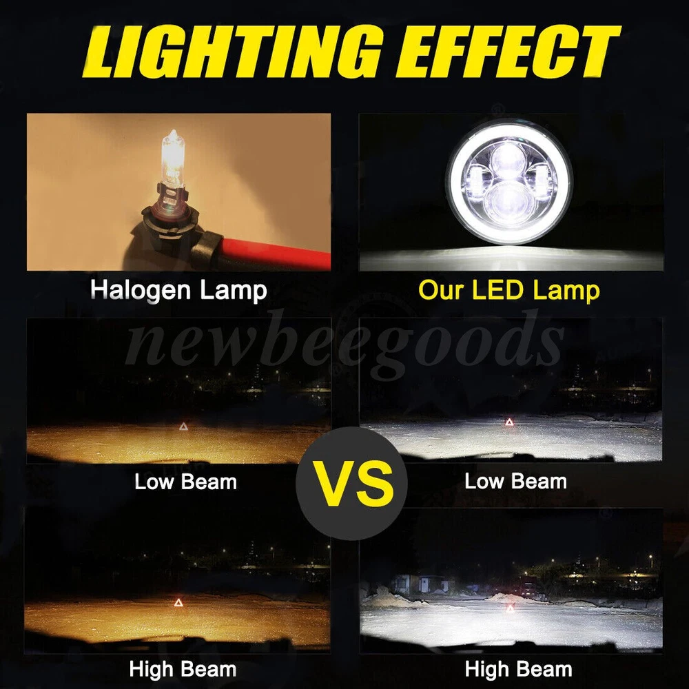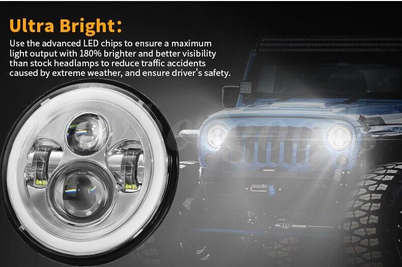 Welcome to NewBeeGoods feedback | contact us Location United States Hours Open 24/7 Support Feel free to Contact us Electronics Motors Supplies Home & Garden Pet Supplies Business & Industrial Newbeegoods USD 37.99 Pair For Toyota FJ Cruiser 2007-2014 7" Round LED Headlights Halo DRL Hi/Lo Beam Notes: 1. Please check whether it is fit your vehicle before purchase. 2.Important: This is a universal item, not adapted to a specific model. In many cases, individual adjustments are required for assembly. Please use the dimensions and pictures to check whether it is possible to fit the vehicle in question. Installation requires knowledge of vehicle electronics, if in doubt have it installed by a specialist workshop. 3. Installation instruction is NOT included,professional installation highly recommended. 4. Note: Without mounting bracket, some models may need mounting bracket! Description: This 7 inch LED headlight has a strong connection with your safe driving. One function is to provide lighting to illuminate the road ahead of the vehicle, accurately illuminate the road ahead, and provide a good vision in bad weather or at night. The other is to play a warning role, in order to remind vehicles and people ahead to improve the safety of driving at night. This headlight is more energy-efficient, has a long service life and a fast response speed. A real amzing item for your car! Features: 【 Multi-functional LED Headlight 】 The 7'' LED headlight has 4 luminous mode (High beam/Low Beam/DRL/Amber Turning Light), making it better remind the opposite passers-by or oncoming cars when you need to turn, so that the other party can make corresponding measures in time, improving the safety of driving at night. 【 Orignal Osram chips 】 The halo lights made with advanced LED chips to give out bright and white rays for clear visibility and broader illumination range, making your driving safe. Its structure adopts a spotlight + flood design, which makes the high beam center point have a wider illumination range and greatly improves driving safety. The item can still perform well and provide the best driving experience for you even in a foggy environment. 【 Excellent Heat Dissipation & Waterproof 】 The housing of the led headlight is made with Die-cast aluminum and has high heat dissipation performance. This product is weatherproof, IP67 waterproof, energy efficient, durable and long-lasting. It can be effective against rain, snow, and heavy fog weather. 【 High Brightness 】 This new LED headlight has 3 times the brightness of ordinary car halogen lights, which is the best choice for upgrading vehicles, ensuring that you drive home safely. 【 Easy To Install 】 Plug & Play, LED Ballast, LED Canbus & H4/H13 Adapter Included. Usually in 20 Minutes or Less for installation. 【 Certificationgs 】 DOT, E9, CE, RoHS, ISO9002, IP67 Specification: Type: LED Headlight Dimension: 7'' Lighting Technology: LED LED Chip: High Quality LED Chip Housing Color: Chrome Headlight Style: Halo Halo Angle Eyes Color: Amber & White Number of Bulbs: 2 Operating Voltage: DC 9-30V Voltage: DC 12V-24V Power: 200W/set; 100W/bulb Life span: Up to 50000 hours Waterproof Rating: IP67 Material: ABS and Aluminum Alloy + PC Breathing Vent: Anti-fogging Working Temperature: -40 + 85°C LED Light Mode: High Beam/Low Beam/DRL/Amber Turning Light Itment Type: Direct Replacement Placement on Vehicle: Front, Left, Right Package Contents: 2x 7 inch Round LED Headlights 2x H4 to H13 Adapter Application: For Any Vehicle models with 7 inch Round headlight,such as: For Jeep Models: For Jeep Wagoneer (1963-1978) For Jeep CJ-7 (1976-1986) For Jeep CJ-8 Scrambler (1981-1985) For Jeep Wrangler TJ 2 Door (1997~2006) For Jeep Wrangler LJ unlimited (4 Door) (2004~2006) For Jeep Wrangler JK 2 Door (2007~2018) ForJeep Wrangler JL 2018~2019 ( need add bracket ) For Jeep Wrangler Unlimited JK 4 Door (2007~2018) For Jeep Wrangler (1997-2015) For 1969-1980 Toyota Corolla For 1979-1987 Toyota Land Cruiser For 2007-2014 Toyota FJ Cruiser For 1979-1981 Toyota Pickup For Chevy Camaro (1969-1981) For Mazda Miata MX5 MX-5 (1990-1997) For Honda Civic (1976-1981) For Ford Custom 500 (1971/1976) For Ford F-100 Pikcup (1969-1974) For Ford F-150 (1975-1979) For Toyota Corolla (1969-1980) For Toyota LandCruiser (1979-1987) For Toyota Pickup (1979-1981) For Oldsmobile Omega (1974-1979) For Plymouth Barracuda (1964-1974) For Plymouth Valiant (1963-1976) For Land Rover Defender 90 (1997) For Land Rover Defender 90 (1995) For Land RoverRange Rover County Classic Sport Utility 4-Door 1995 For Land Rover Range Rover (1987-1995) For Land Rover 90/110 1983 to 1991 (including 2.5N/A, 2.5 Turbo, V8) For Land Rover 90/110 Defender 200 Tdi For Land Rover 90/110 Defender 300 Tdi For Land Rover 90/110 Defender Td5 For Land Rover 90/110 Tdci Hummer AM General 1992-2001 Hummer H2 2003-2009 Hummer H1 2002-2006 For Hummer H1 H2 (2003~2009) ( H2 needs 9007 male to H4 female adapter, package not included ) For Lada 4x4 urban Niva For UAZ Hunter For Suzuki Samurai For Kenworth T-2000 1998-2010(Buyer Note, Our Headlight plug is H4,H4-H13) For Puch G and Mercedes G models For 1990-1997 Mazda Miata For 1976-1977 Mazda Mizer For 1979-1985 Mazda RX-7 For 1976-1977 Mazda 808 Shipping Returns Payment We only support transactions through the eBay, not other channels. We support all payment methods recommended by ebay. We promise to protect all the private information of our customers. It will take about 1-5 working days to reach you within USA. If your item develops a fault due to a manufacturing defect please contact us and we guarantee a satisfactory solution. If you return your item for any other reason within 30 days from receipt we will refund you. 100% Feedback - we're proud of our 100% record and aim to keep it that way! Please contact us if you're not entirely happy with your order and we'll try to rectify it ASAP! Our aim is to ship within 24 hours. All of our products are shipped 