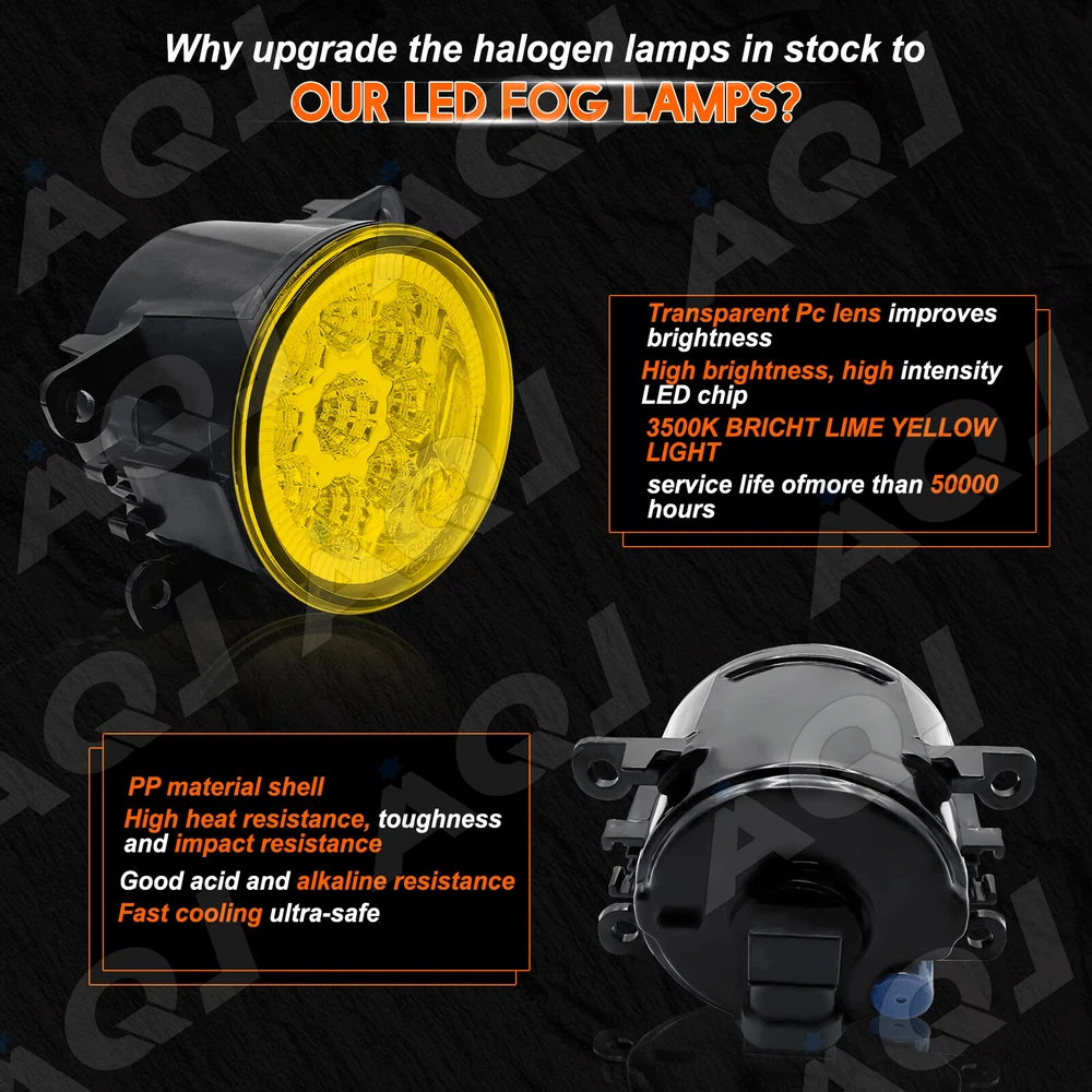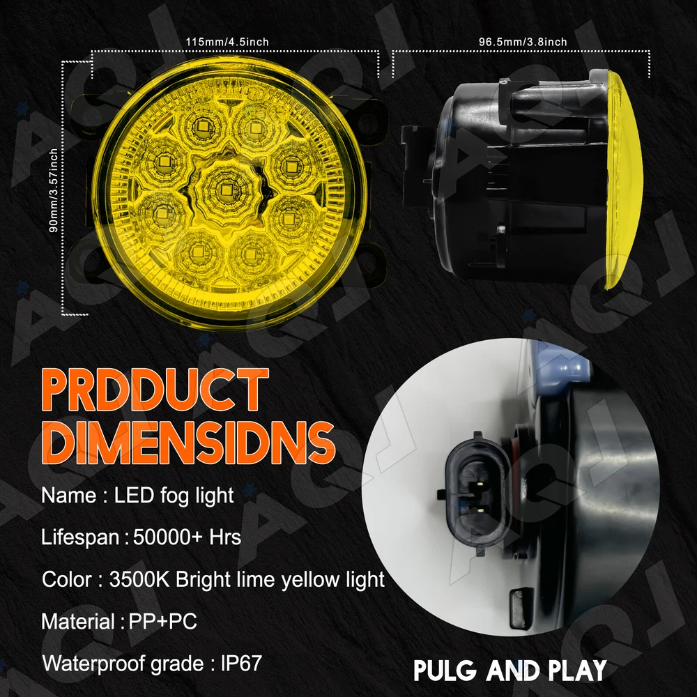 Light Color: Yellow Interchange Part Number: H11 Fog Light Lighting Technology: LED Reference Number2: for Jaguar vehicles using part#XR837532 Reference Number5: for Subaru vehicles using part#H451SAJ100 Item Length: 11CM Reference Number3: for Nissan vehicles using part#26154-EA500 84501AJ00A Item Diameter: 9CM Fitment Type: Direct Replacement Fog Light Type: 3.5" Round,Black inner bezel Power: 55W Current: 20A Note: The box is sent ramdomly Other Part Number: For Car/Auto/SUV/Off Road/Pickup/MPV/RV/Vehicle Superseded Part Number: For Car/Auto/SUV/Off Road/Pickup/MPV/RV/Vehicle Voltage: 12V Finish: As Pictures Shown Material: PPT Item Width: 8.5CM Beam Type: FOG LIGHTS Type: Front Fog Light Reference Number6: for Suzuki vehicles using part#990E0-65J36-000 Lumens: 6000 lm Bulb Shape Code: H11 Color: YELLOW Brand: AQJ Reference Number4: for Ford/Lincoln vehicles using part#4F9Z15200AA 3225-2050B Reference Number1: for Acura/Honda vehicles using parts#33900STKA11 Manufacturer Part Number: H11 Fog Light outer shell:: YELLOW