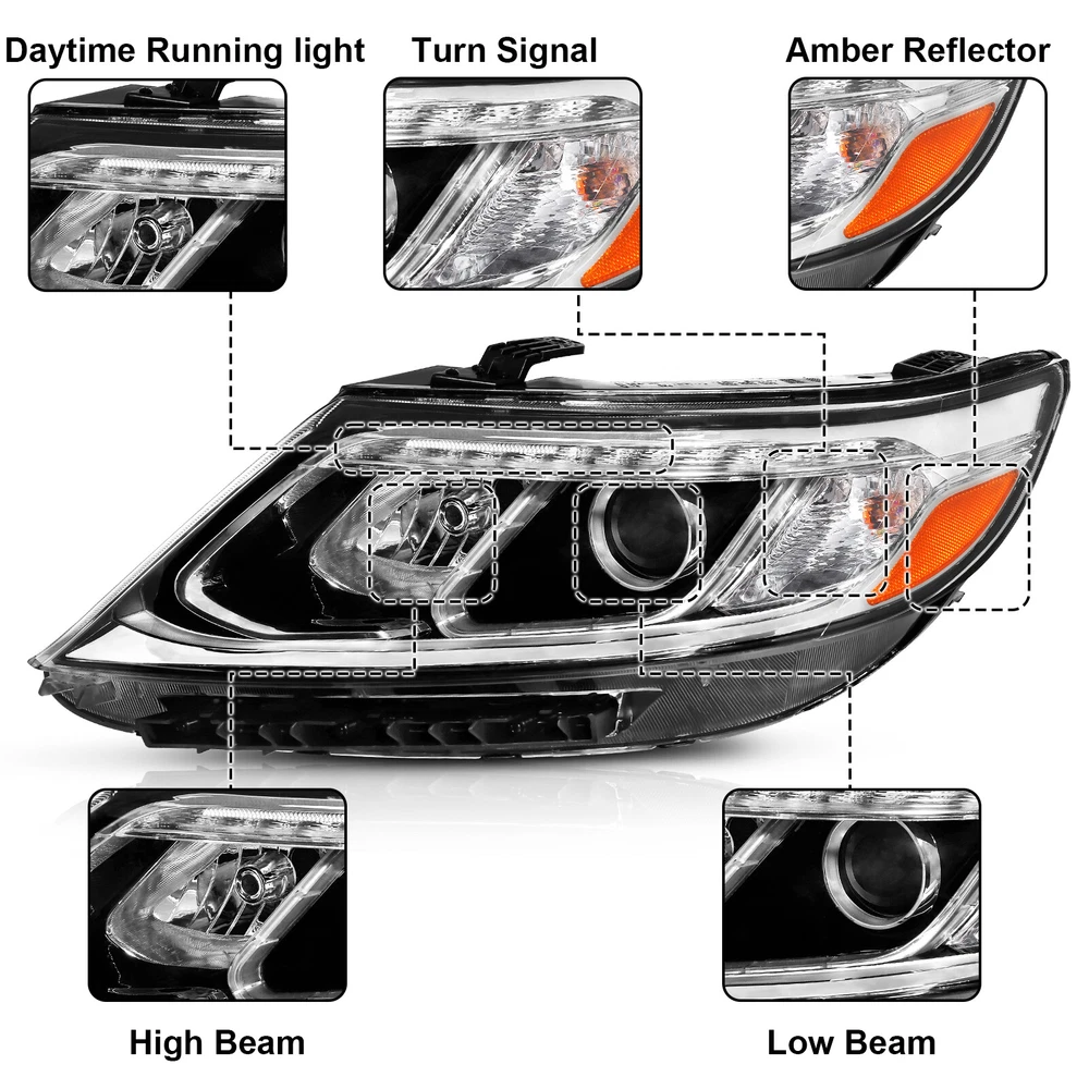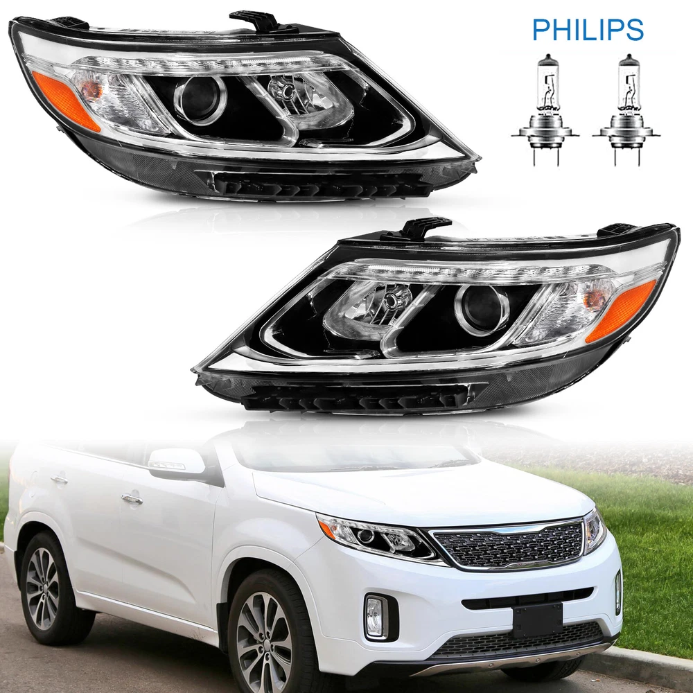 Pair Halogen Headlight Assembly w/Bulbs For 2014 2015 Kia Sorento LX Left Right Features: 1.Direct replacement for stock assemblies 2.Comes in pairs with driver & passenger sides (left & right) 3.DOT and SAE compliant with quality meeting or exceeding OEM units 4.Comes with bulbs to save your money and time 5.All Headlight Lenses come with anti-yellowing/ageing coating 6.1-Year limited warranty Specification: High Beam Bulb: H7 (Bulbs are included) Low Beam Bulb: H7 (Bulbs are included) Chrome Housing Clear Lens Clear Reflector Compatible with: 2014 2015 Kia Sorento LX Package includes: 1 Pair of headlights