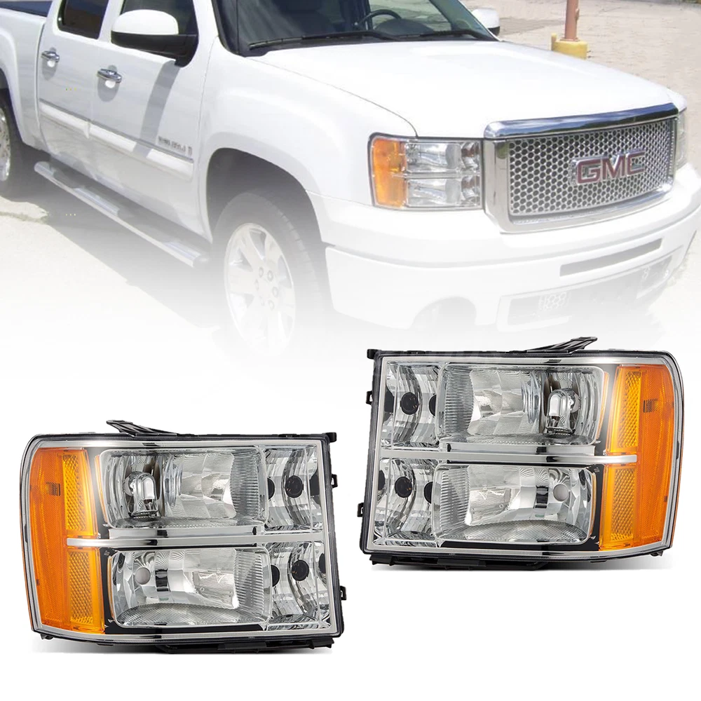 Pair Headlights For 2007 2008-2013 GMC Sierra 1500 2500 3500HD Chrome Headlamps