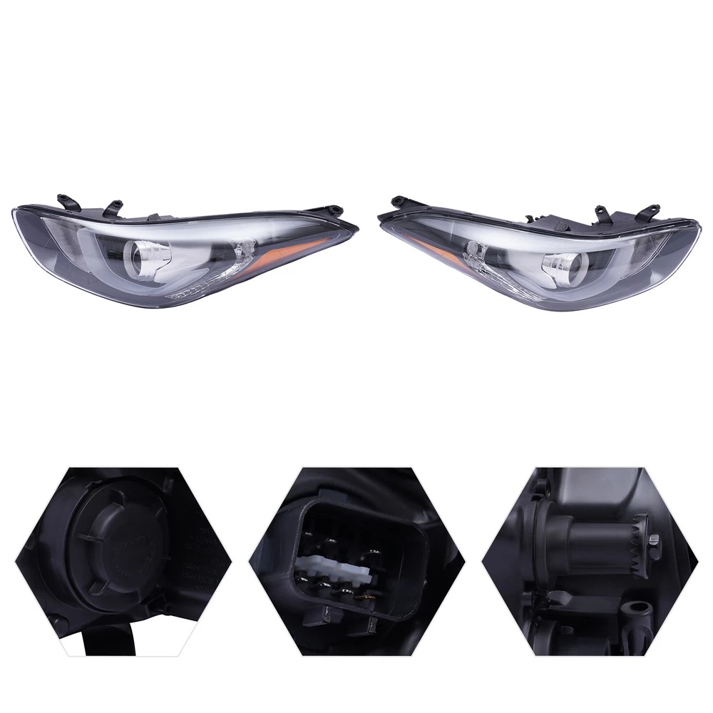 Package Included 1*Left Driver Side Headlight 1*Right Passenger Side Headlight Pair Headlights with LED Projector Left+Right For 2014 2015 2016 Hyundai Elantra Specifications Manufacturer Part number: 92102-3Y510 92101-3Y510 Interchange Part Number: HY2503186 HY2502186 OE/OEM Part Number: 92102-3Y510 92101-3Y510 Applicable Models: 2014-2016 Hyundai Elantra Condition: New Material: ABS+Polycarbonate Light Souce Type: Halogen with LED Projector Light Color: White Housing Color: Black & Chrome Lens Color: Clear Voltage: 12V Mounting Style: Screws High Beam Type: Halogen, H1 (Not included ) Low Beam Type: Halogen, H7(Not included ) Turn Signal Type: PY21W ((Not included ) Side Marker Lamp Type: LED (Included) LED Daytime Running Light: Yes Installation Position: Front, Right, Left Side Way of Use: Direct Replacement Key Features Durable Material: This headlight is made of high-quality ABS, and polycarbonate materials, which are corrosion-resistant and high-temperature resistant , allowing it to be used for a long time. Increased Safety : It gives you a clear view of the road ahead at night and in any inclement weather that may occur. As a result, drivers will be safer while driving. Enhance the Look : Our headlight upgrades the look of your vehicle with crisp style and extreme range. It's ideal for displaying or replacing old and worn headlights. Perfectly Compatible: Our headlight is a customized product, specially customized for the 2014-2016 Hyundai Elantra. So it can be perfectly compatible with the adapted models and can be installed directly. Highlights Brand New, With High Quality Improving Driving Safety PP, PC Material, Sturdy and Durable High Light Transmittance Easy to Clean Cool Outlook Direct-fit Replacement Fine Workmanship Good Sealing Energy-saving with Low Power Consumption High Impact Resistance Notes We strongly recommend professional installation. Please contact us if you have any questions. Please allow the slight color difference caused by the shooting light and 1-3cm error due to manual measurement, and make sure you do not mind before you place the order. Fits (As a Reference) For 2014 2015 2016 Hyundai Elantra OE/OEM Part Number: 92102-3Y510 92101-3Y510 Package Included 1*Left Driver Side Headlight 1*Right Passenger Side Headlight Payment Delivery details Terms of sales About us Contact us Payment We accept ebay payment 。 Fees such as import duties, taxes are not included in the item price or shipping costs. These charges are the buyer's responsibility. Delivery details Shipping: 2-9 working days to: USA Terms of sales We maintain high standards of excellence and strive for hundred percent customer satisfaction. Feedback is very important to us. We hope that you contact us immediately before you give neutral or negative feedback, so that we can address your concerns. It is impossible to address issues if we do not know about them! About us Your satis faction is our ultimate goal. We work hard to earn your trust and future business. Our certified technicians have tested each item before shipping. The unit comes with 1 year limited warranty on all manufacturing defects. a) If you receive a defective item, you may return it or ask for a discount. Please contact us within 14 days after you receive the package. b) What you returned must be intact and in its original packaging as re? u. Customer is responsible for shipping costs of the returned item. c) We will cover the cost of shipping back t with the shipping rate indicated in the registration page. We will send you a new unit or refund the full payment you paid. Thank you. Contact us Business Hour Business Hour: Monday To Friday: 8:30 AM to 5:00 PM (Beijing China time) Due to time zones, our reply to your questions may not be immediately. But within above working time, we will reply your email within 24 hours. If it's non-workdays, please kindly be patient and wait till Monday. Please contact us with ebay message. Please feel free to contact us if you have any questions. Monday To Friday: 8:30 AM to 5:00 PM (Beijing China time) Due to time zones, our reply to your questions may not be immediately. But within above working time, we will reply your email within 24 hours. If it's non-workdays, please kindly be patient and wait till Monday. Please contact us with ebay message. Please feel free to contact us if you have any questions.