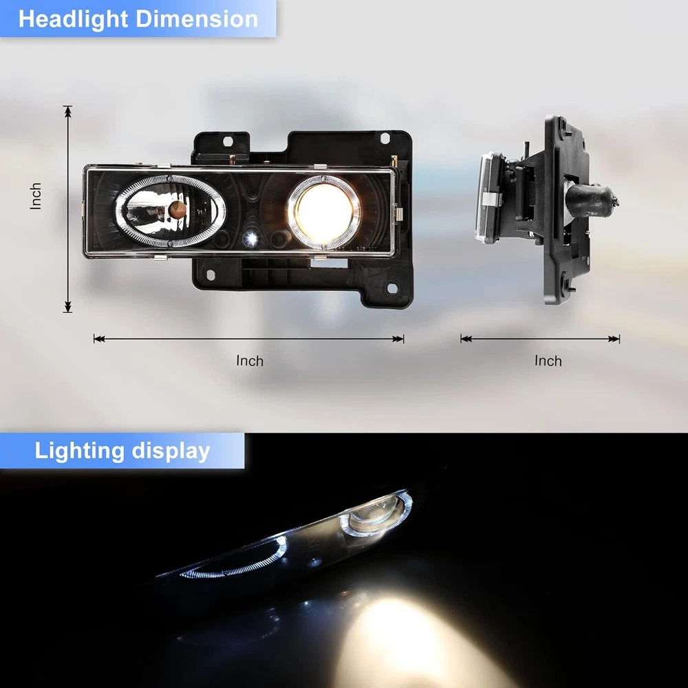 Home Payment Shipping Return Policy About Us Contact Us Feedback Store Categories Other Car Refrigerator Front Bumper Rear Bumper Fender Flares Inner Fenders Side Steps Running Board A-Pillar Light Mount Brackets Headlights Taillights Fog Lights LED Headlights LED Taillights LED Fog Lights Jeep Chevrolet Ford Toyota Dodge GMC Chrome Housing+Clear Lens: https://www.ebay.com/itm/402723119053 About this item ๐ ใPerfect FitmentใOur headlight assembly is compatible with for 1992-1994 Chevy Blazer /1988-1999 Chevy c1500 Pickup /1992-1999 Chevy c1500 Suburban /1988-2000 Chevy c2500 Pickup /1992-1999 Chevy c2500 Suburban /1988-2000 Chevy c3500 Pickup /1988-1999 Chevy k1500 Pickup /1992-1999 Chevy k1500 Suburban /1988-2000 Chevy k2500 Pickup /1992-1999 Chevy k2500 Suburban /1988-2000 Chevy k3500 Pickup /1995-2000 Chevy Tahoe /1988-1999 Gmc c1500 Pickup /1992-1999 Gmc c1500 Suburban /1988-2000 Gmc c2500 Pickup /1992-1999 Gmc c2500 Suburban /1988-2000 Gmc c3500 Pickup /1988-1999 Gmc k1500 Pickup /1992-1999 Gmc k1500 Suburban /1988-2000 Gmc k2500 Pickup /1992-1999 Gmc k2500 Suburban /1988-2000 Gmc k3500 /1998 Gmc k3500 Pickup /1992-1999 Gmc Yukon . And all of headlights that are SAE and DOT approved, meet with standard safety and OEM requirement. ๐ ใPerfect Beam PatternใHeadlights has well performance of accurate projection beam mode that enhance visibility during night time,heavy rain,snow. This headlights assembly offers higher power efficiency, longer life, and better space-saving than the conventional incandescent-type lamps. ๐ ใPlug and PlayใHeadlight assembly for 1988-1999 Chevy C1500 C2500 C3500 which perfectly replace factory parts and are designed for quick and easy installation without drilling or modifications. Headlight assemblies are designed to work without any special wiring. ๐ ใIP67 WeatherproofใThe headlights assembly for 1992-1994 Chevy Blazer made from superior OEM grade ABS plastic housing and full sealed beam, that can reach up to IP67 weatherproof to ensure pretty durability in heavy rain or terrible weather. Moreover, the well-designed breather has a good heat dissipation to make the lights breathable and extend the light's life. ๐ ใPremium QualityใThis headlights are made of Special Materials which are Resistant to Water, The Dustproof and Shockproof Clear PC Lens are not easy to yellow and crack. Otherwise, the back shell is with strong impact strength and good thermostability. 100% Advanced chips add visibility crucial in Navigation Poor Weather Conditions, Including Rain And Snow, as Well as Dense Fog. Last more than 50,000 Hours. ๐ ใ7/24 Customer ServiceใAll of our headlights are sent from US. Please feel free to contact us via message center if any quality issues. We always stand behind these products and are committed to providing responsive customer service. (Reply within 24 hours). Notes: Package comes in a pair (driver's side and passenger's side headlights). Vehicle Fitment ๐ 1992-1994 Chevy Blazer ๐ 1988-1999 Chevy c1500 Pickup ๐ 1992-1999 Chevy c1500 Suburban ๐ 1988-2000 Chevy c2500 Pickup ๐ 1992-1999 Chevy c2500 Suburban ๐ 1988-2000 Chevy c3500 Pickup ๐ 1988-1999 Chevy k1500 Pickup ๐ 1992-1999 Chevy k1500 Suburban ๐ 1988-2000 Chevy k2500 Pickup ๐ 1992-1999 Chevy k2500 Suburban ๐ 1988-2000 Chevy k3500 Pickup ๐ 1995-2000 Chevy Tahoe ๐ 1988-1999 Gmc c1500 Pickup ๐ 1992-1999 Gmc c1500 Suburban ๐ 1988-2000 Gmc c2500 Pickup ๐ 1992-1999 Gmc c2500 Suburban ๐ 1988-2000 Gmc c3500 Pickup ๐ 1988-1999 Gmc k1500 Pickup ๐ 1992-1999 Gmc k1500 Suburban ๐ 1988-2000 Gmc k2500 Pickup ๐ 1992-1999 Gmc k2500 Suburban ๐ 1988-2000 Gmc k3500 ๐ 1998 Gmc k3500 Pickup ๐ 1992-1999 Gmc Yukon Specification ๐ Quantity: 1 Set (Left & Right Side Headlights included) ๐ Certification: DOT/SAE Compliance ๐ Wiring Harness: Not Included ๐ Replaces Original (OE) Part #: L: 15034929; R: 15034930 ; ๐ Partslink๏ผL: GM2502101; R: GM2503101 ; ๐ Bulb type: LED , Halogen ๐ Low Beam Bulb: H1 12V55W [Included]; ๐ High Beam Bulb: 9005 12V60W [Not Included]; ๐ Halo Ring: LED Included ๐ Color Finish: Black Housing / Clear Lens/ Projector Halo Ring ๐ Housing/ Lens Material: PC ๐ Beam Type: High Beam: Projector+ Reflector; Low Beam: Reflector Package ๐ 1 Pair of Headlights(Driver and Passenger Side) ๐ Low Beam Bulbs Payment Delivery details Terms of sales About us Contact us Payment We accept PayPal, credit card , Apple Pay & Google Pay etc. Delivery details All items will be shipped within 1-3 business days after payment received, we will try our best to ship out as soon as we can, hope for your understanding. Please double confirm your address and contact information, which will help the delivery faster and more accurately. Note ๏ผbuyers who purchase international products need to pay import tariffs!!! Terms of sales Professional installation is highly recommended. Any problem of the item please feel free to contact us first , please D o Not leave negative feedback before that, or simply return it within 60 Days in original condition. We will resolve it for you ASAP. About us Any questions please do not hesitate to contact us directly by eBay message . We will reply you within 24 hours asap, thanks for your understanding. Contact us Should you have any problem or require any further information please feel free to contact us . If you are satisfied with our product and service, please kindly leave us a positive feedback. On Nov 29, 2024 at 00:15:54 PST, seller added the following information: