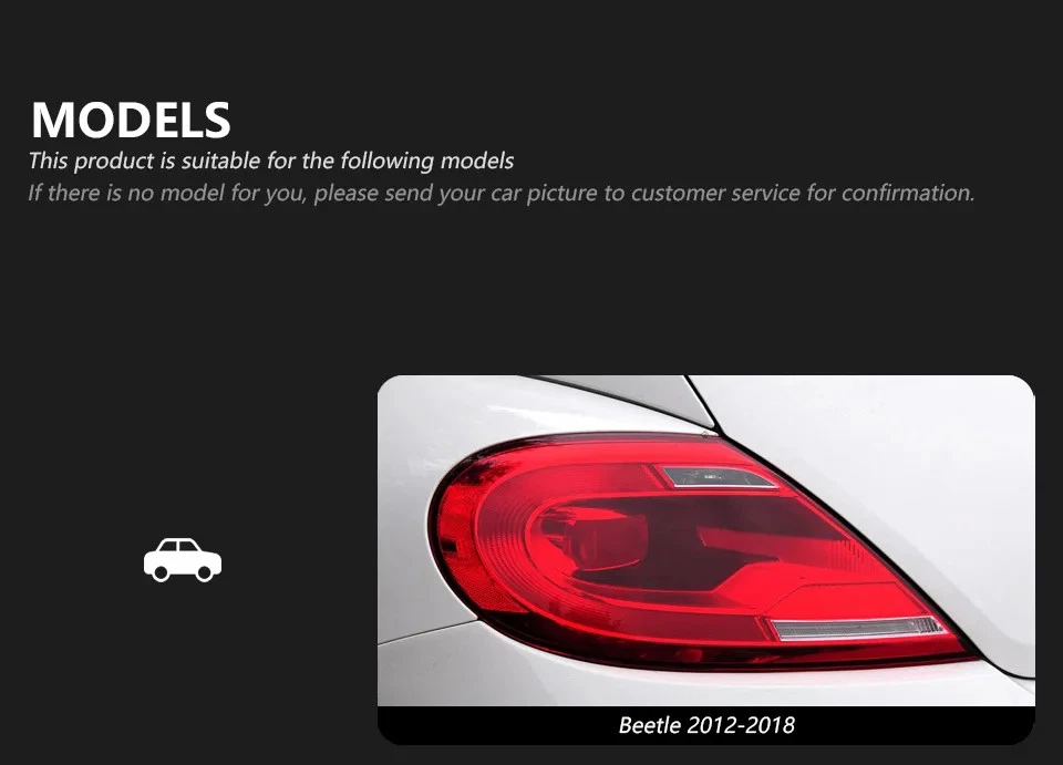 Housing Color:Black物品状况:全新: A brand-new,unused,unopened,undamaged item in its original paItems Included:BulbsCertification:CCC,Dot,iso9001,EMARKSpecial Features:LightingNumber of Bulbs:2Country of Origin:ChinaVolkswagen Model:BeetleFeatures:Projector Housing, DurableOE/OEM Part Number:Does not applyManufacturer Warranty:1 YearCountry/Region of Manufacture:ChinaColor Temperature:6000KPlacement on Vehicle:Left, Rear, RightItem Type:Tail Light AssemblyManufacturer Part Number:Does not applyOrigin:Mainland ChinaBrand:TYPYFinish:Polished, SmoothWattage:12 WFor Vehicle Brands/Model:VolkswagenLens Color:RedItem Diameter:3Beetle-Year:2012,2013,2014,2015Item Weight:5Light Color:RedBrand Name:TYPYMounting Style:ScrewsLighting Technology:LEDVoltage:12vHigh-concerned chemical:NoneMaterial:LEDType:Tail Light Assembly