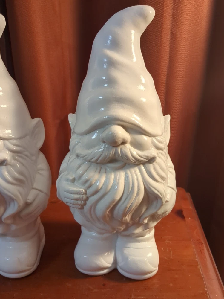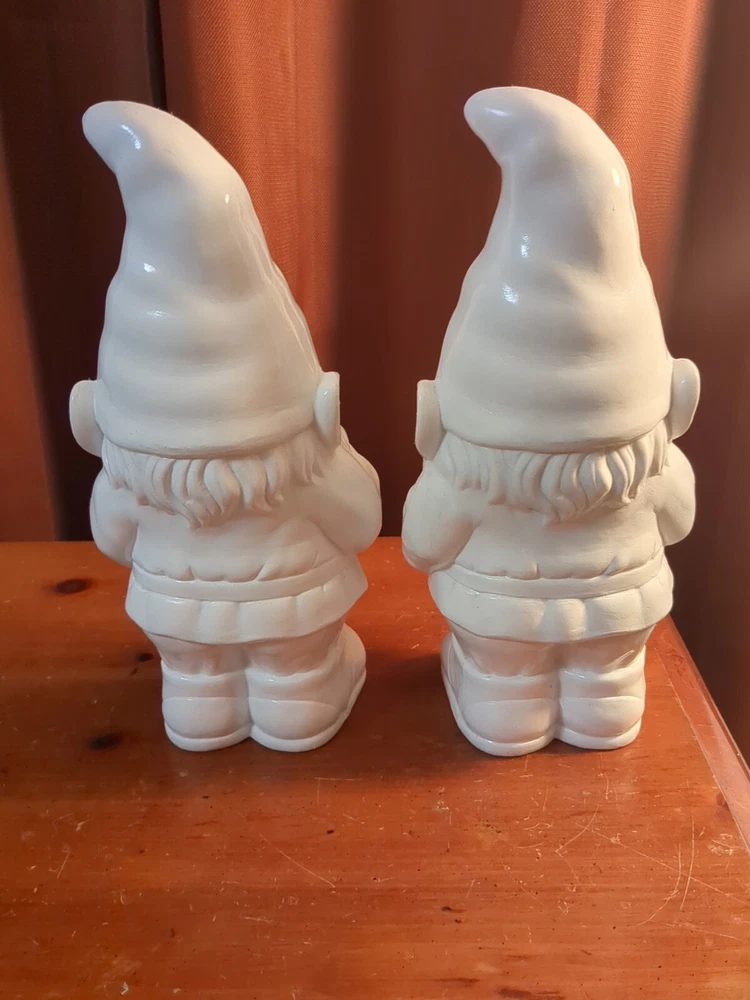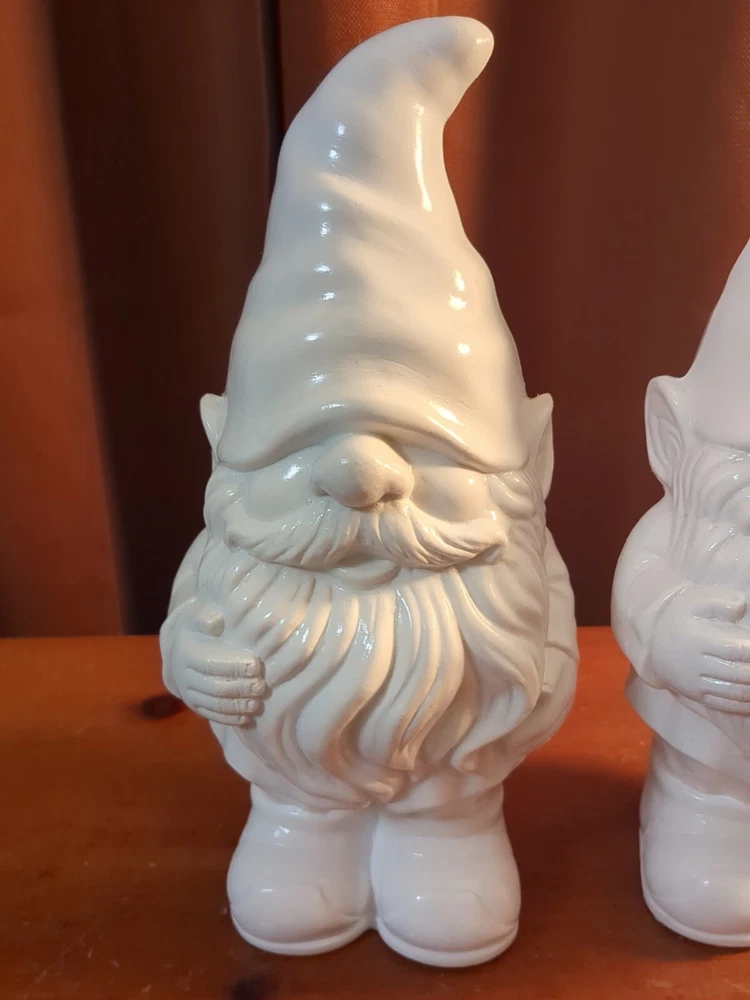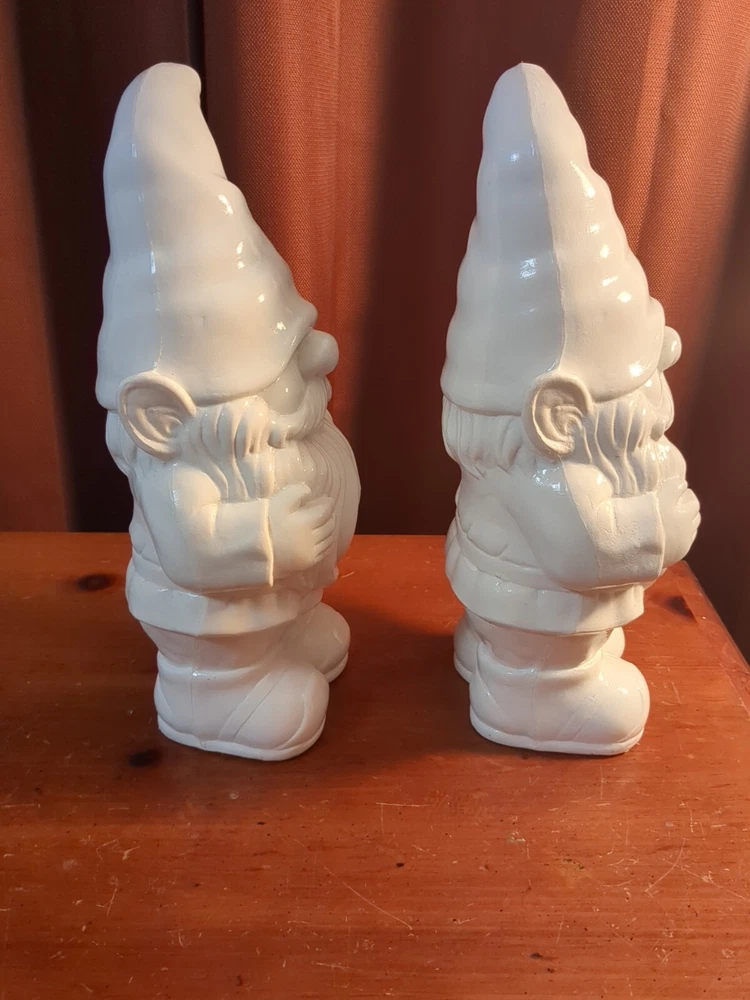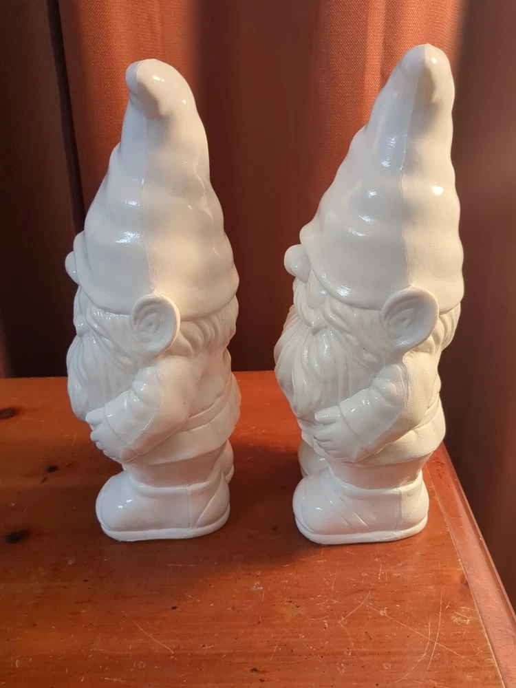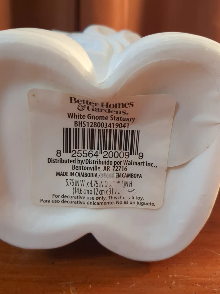 SET OF 2 NO CHIPS NO CRACKS EACH GNOME WEIGHS 4LBS SHIPPED WITH CARE Enhance the charm of your outdoor space with this pair of Better Homes & Gardens white garden gnomes. These 12.5-inch resin statues are perfect for adding a touch of whimsy to your garden, patio, or lawn. The glossy finish and medium size make them an elegant addition to any outdoor decor. Crafted with durability in mind, these statues are made of high-quality resin and weigh 4 pounds each, ensuring they will stand tall against the elements. The item height and length are 12.5 inches and 6 inches respectively, making them the ideal size for any garden space. Bring home these adorable garden gnomes and add a touch of magic to your outdoor setting.