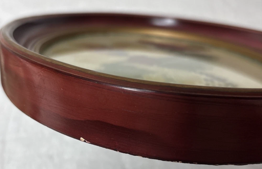 This product is a pair of vintage floral needlepoint pieces in oval frames with a glass front, measuring 8 x 10 inches and featuring roses in reds and yellows, and a silver thread running through them. The brand is handmade in the United States, making each piece unique and crafted with attention to detail. These framed needlepoint pieces are a beautiful addition to any home decor, bringing a touch of classic charm and sophistication with their intricate designs and high-quality craftsmanship. These are pre-owned; please look at all pics as they are part of description. I have shown a couple of small issues with the SIDE of the frames.