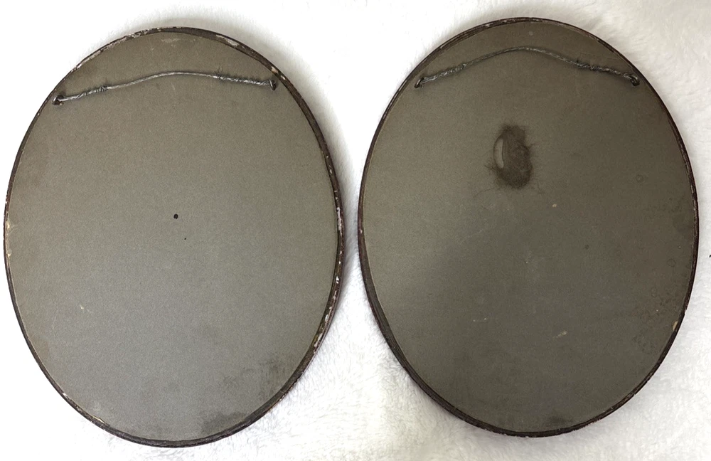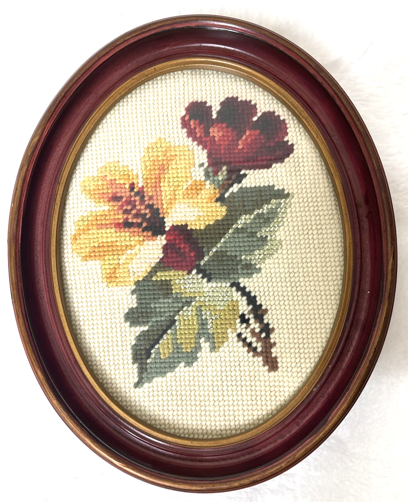 Pair of 1949 Hand Stitched Needlepoint Petit Point Oval Art Framed Vintage
