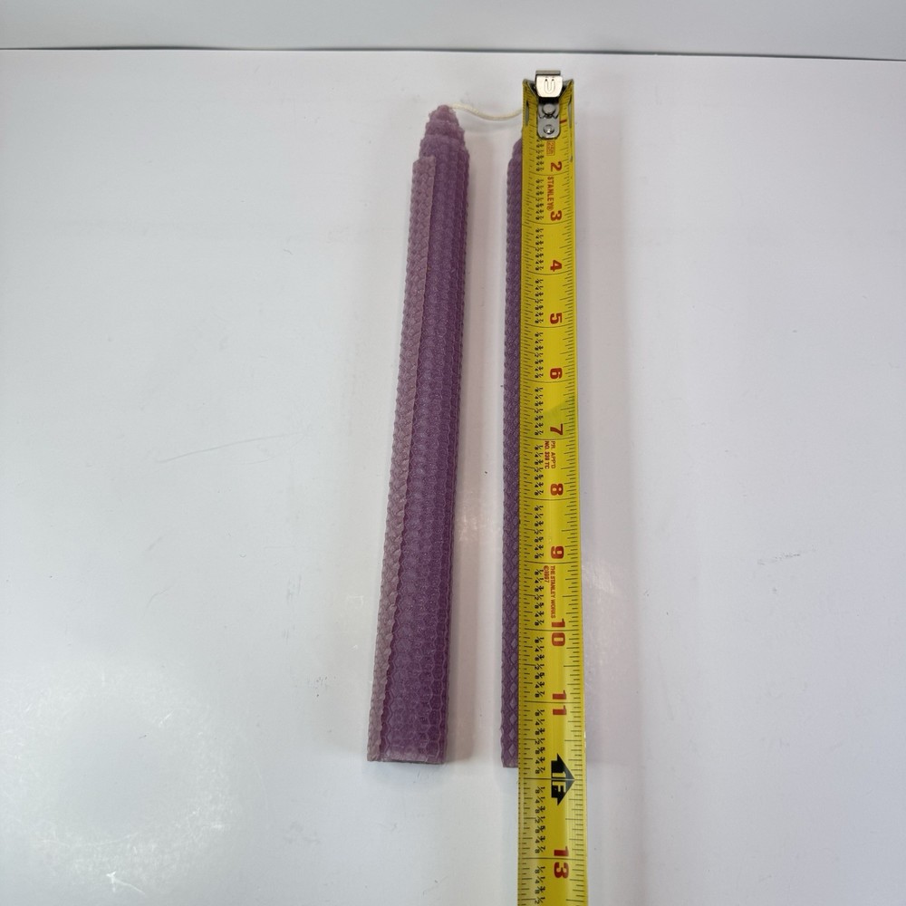 These vintage honeycomb beeswax candles are hand-rolled and stand at 12 inches tall, making them a unique and decorative addition to any dining table. The purple color and natural theme of these unscented candles add a touch of charm to any room, while the tapered shape and round base make them a perfect fit for a dining room setting. Made in the United States, these candles are sure to give your home a warm and inviting atmosphere with a hint of vintage sophistication.
