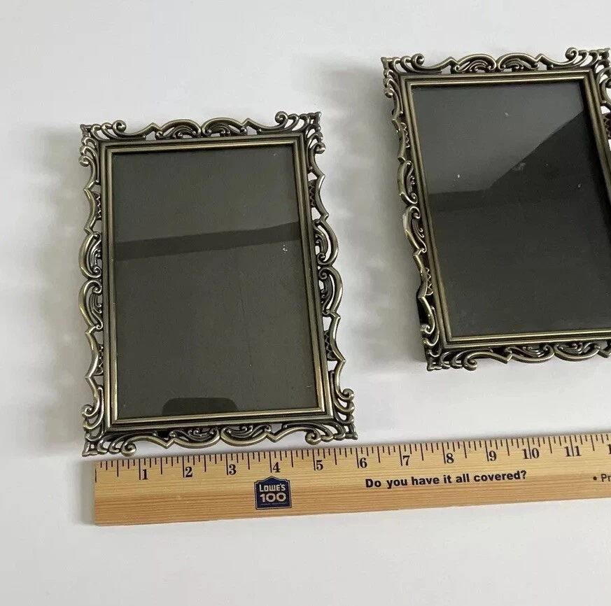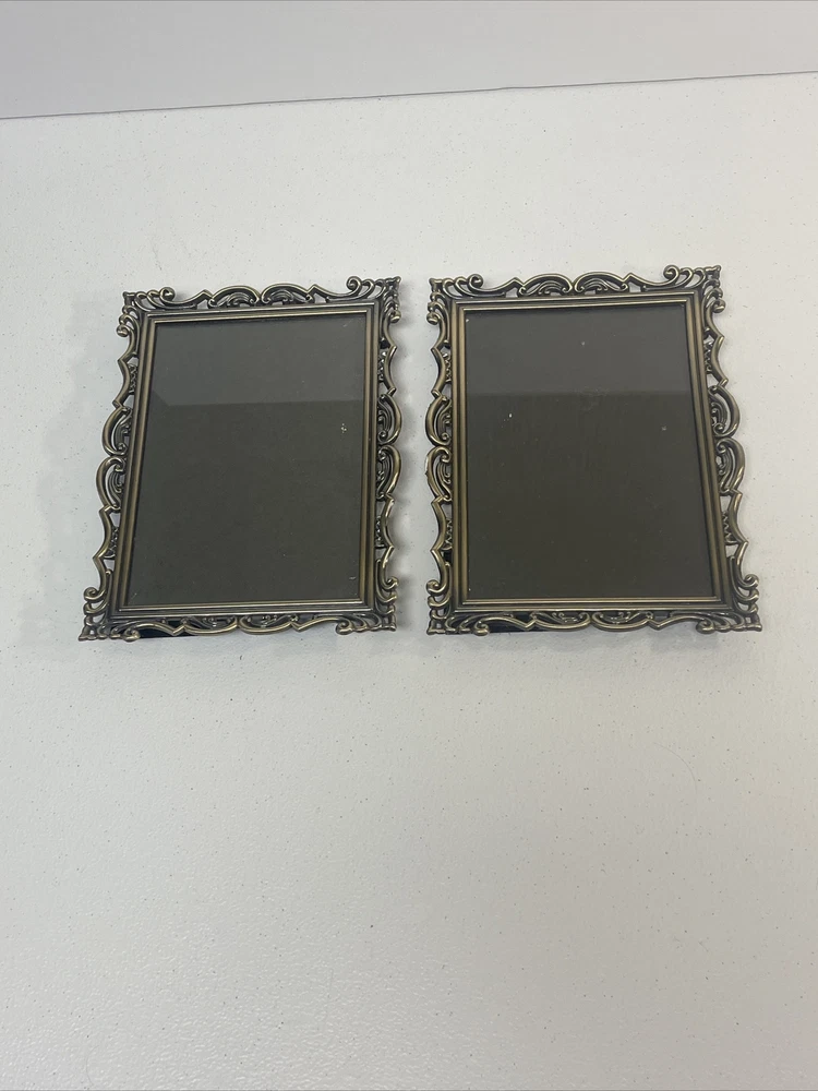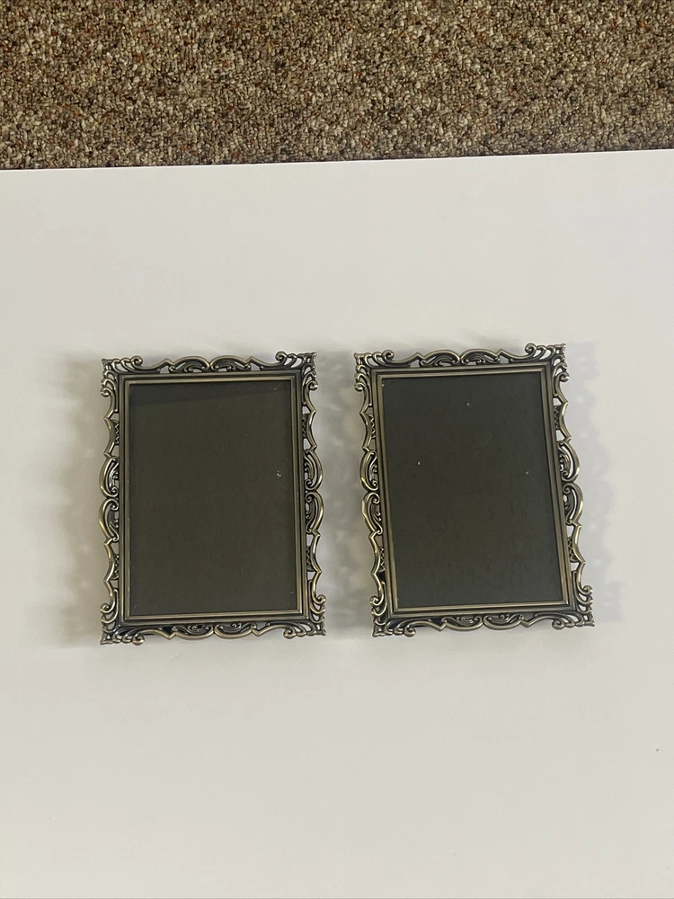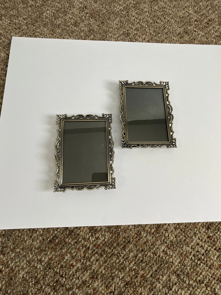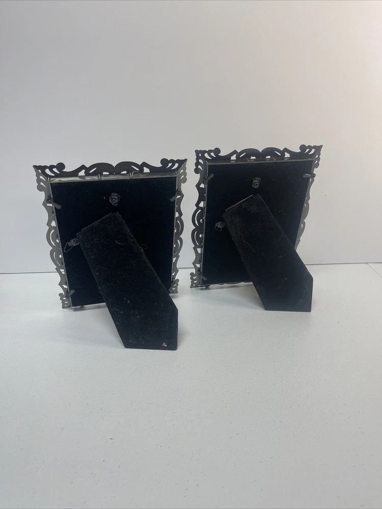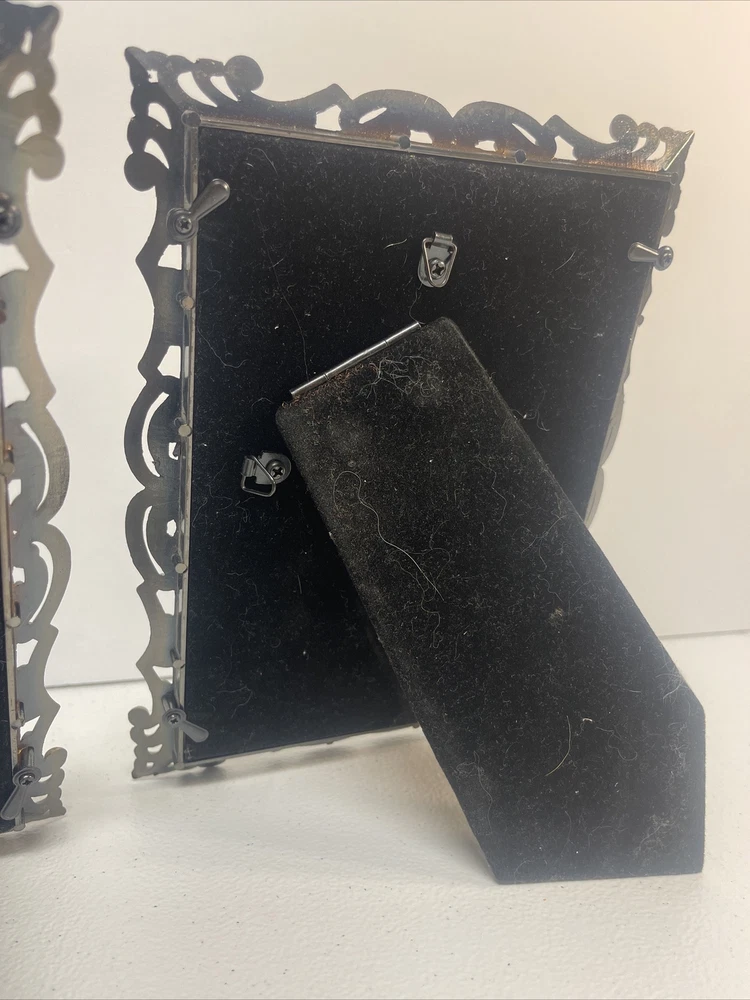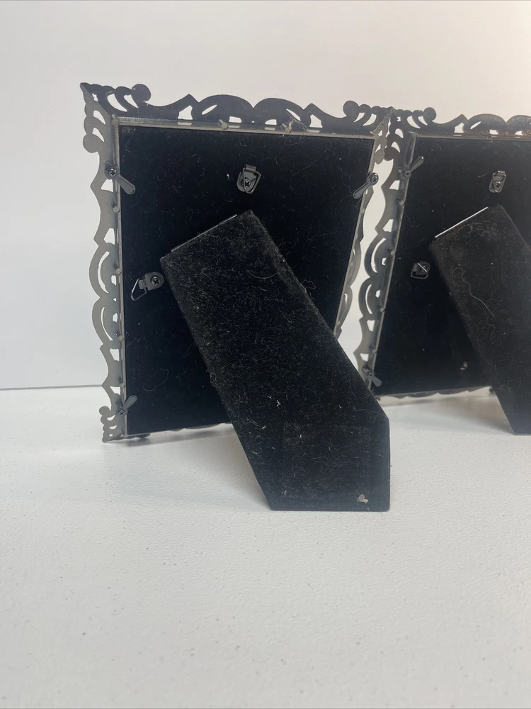 Pair Ornate Baroque Metal Photo Picture Frames 5x7 Easel Black Felt Back