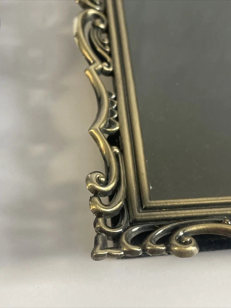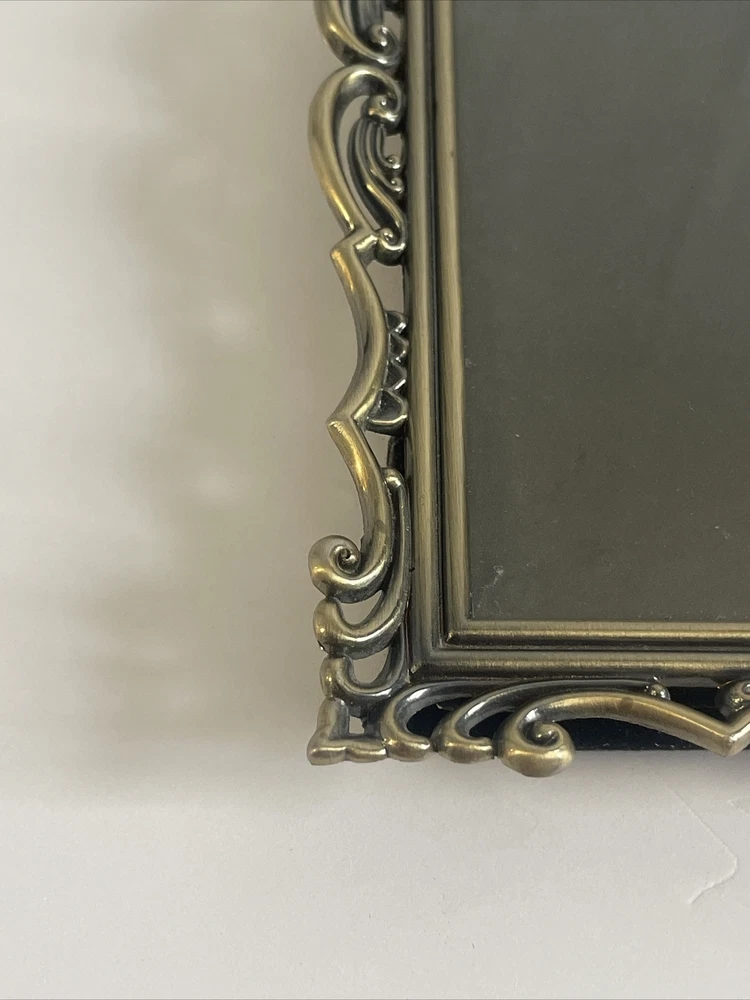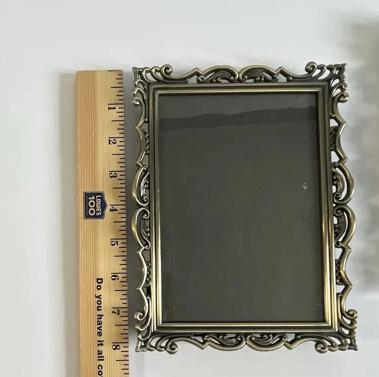 Brand: Unbranded Pattern: Scroll Material: Metal Item Height: 8 in Mounting: Free Standing Item Width: Less Than 5 in Orientation: Portrait Color: Black Type: Photo Frame Features: Ornate Glass Type: Clear Glass Item Length: 6 In Shape: Rectangle
