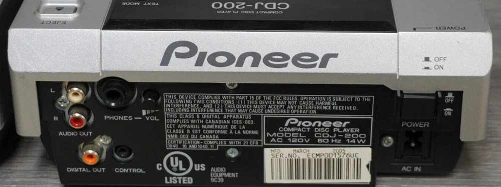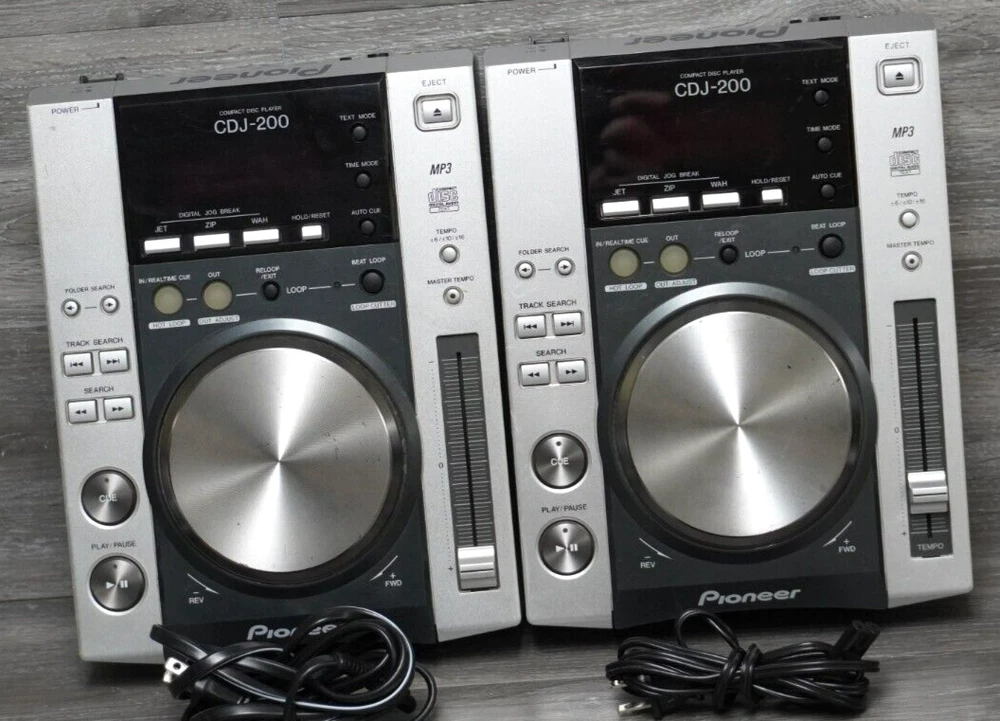 Pre- Owned Pair Pioneer CDJ-200 MP3 CD Decks w/ Effects TESTED & WORKING. NO SIGNS OF ANY MAJOR DAMAGE. SOME STANDARD SIGNS OF USAGE SUCH AS SCRATCHES CAN BE SEEN AROUND THE EXTERIOR. NO CRACKS OR DENTS SEEN ANYWHERE. WITH TWO POWER CORDS NO BOX. PLEASE SEE ALL PICTURES BEFORE PURCHASING. WHAT YOU SEE IN THE PICTURES IS WHAT YOU WILL BE RECEIVING FREE & SAFE SHIPPING GURANTEED