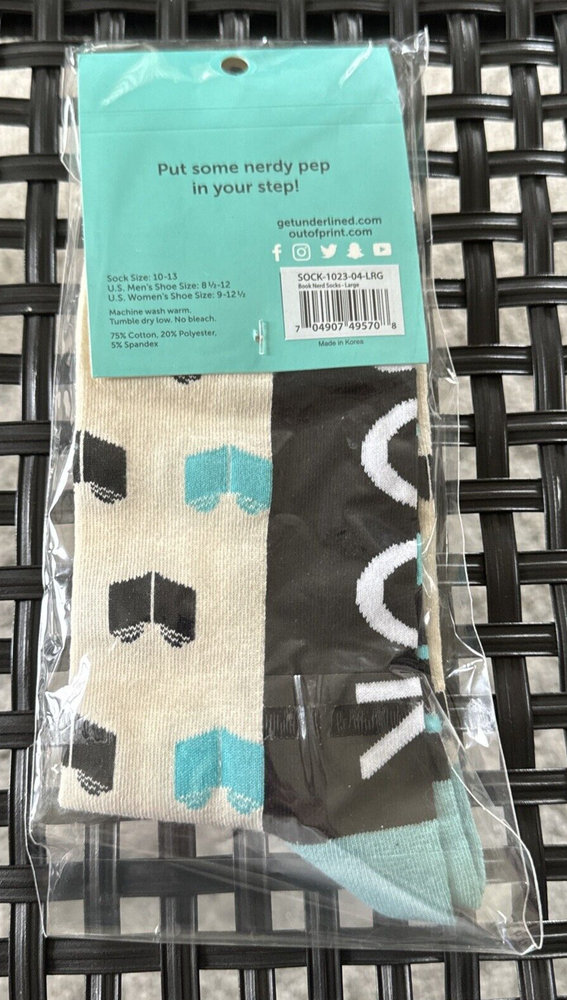 Elevate your sock game with these Underlined book nerd socks! Featuring a fun and colorful design, these socks are perfect for any occasion, whether you're lounging at home or out and about. Made with a comfortable blend of cotton, polyester, and spandex, these socks are machine washable for easy care. Designed for women's shoe size L, these full toe socks are perfect for all seasons. Each pack contains one pair of socks, with the manufacturer part number 1023-04-LRG. These socks are brand new and come in original packaging. Add a touch of personality to your outfit with these fun and quirky book nerd socks! As pictured - I use my own photos. Please look at pictures closely as they are part of the description. Smoke Free Environment US: Fast Shipping with Tracking Provided International: Via eBay International Shipping Program Only Make sure your mailing/shipping address is correct before you submit your order. I won't reship an item for free. This item will be packed with extreme care to insure a safe arrival to its new home. Items may ship with recycled materials. Feedback is very important to us. We strive for 5 stars! Once you receive your item, we ask that you leave feedback for that item. This allows us to know if you are happy with your transaction. In return we will leave feedback for you. Check Out My Other Listings