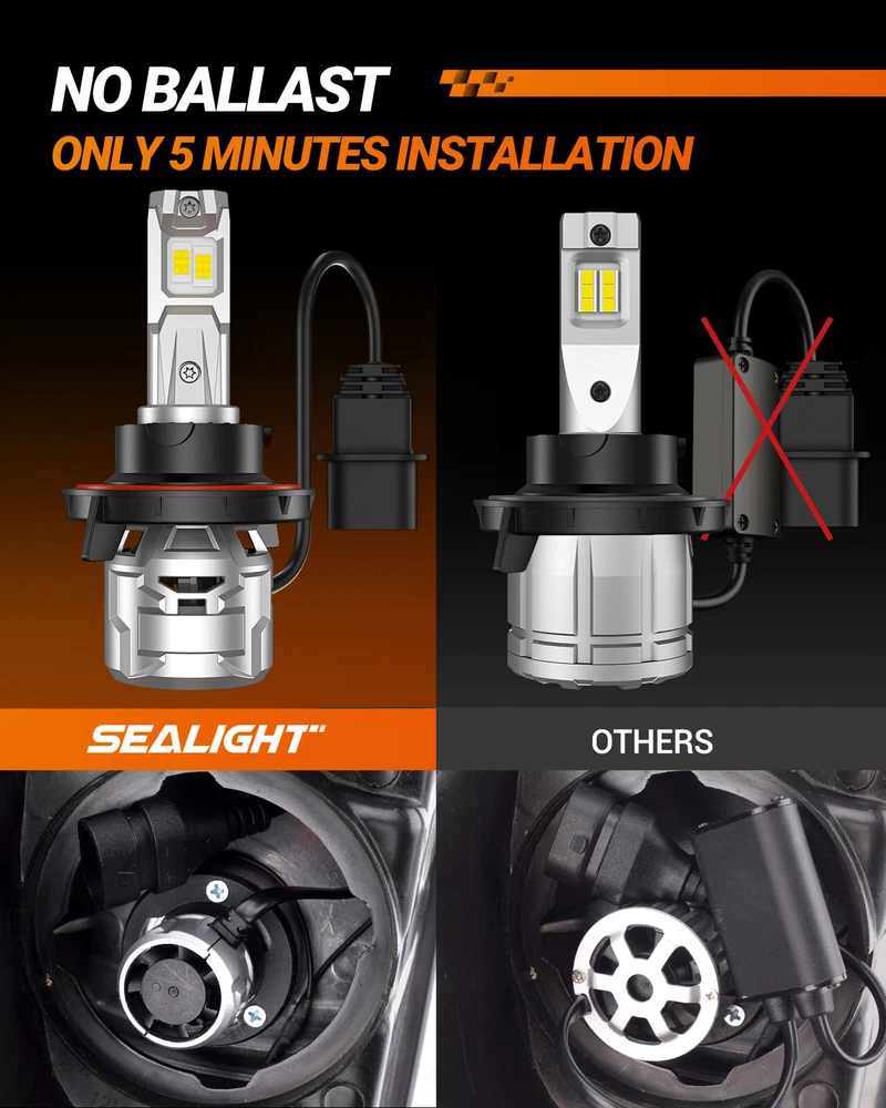 Pair X5 SEALIGHT H13 High Low Beam Bulbs Kit LED Headlight W/Bulbs White Light