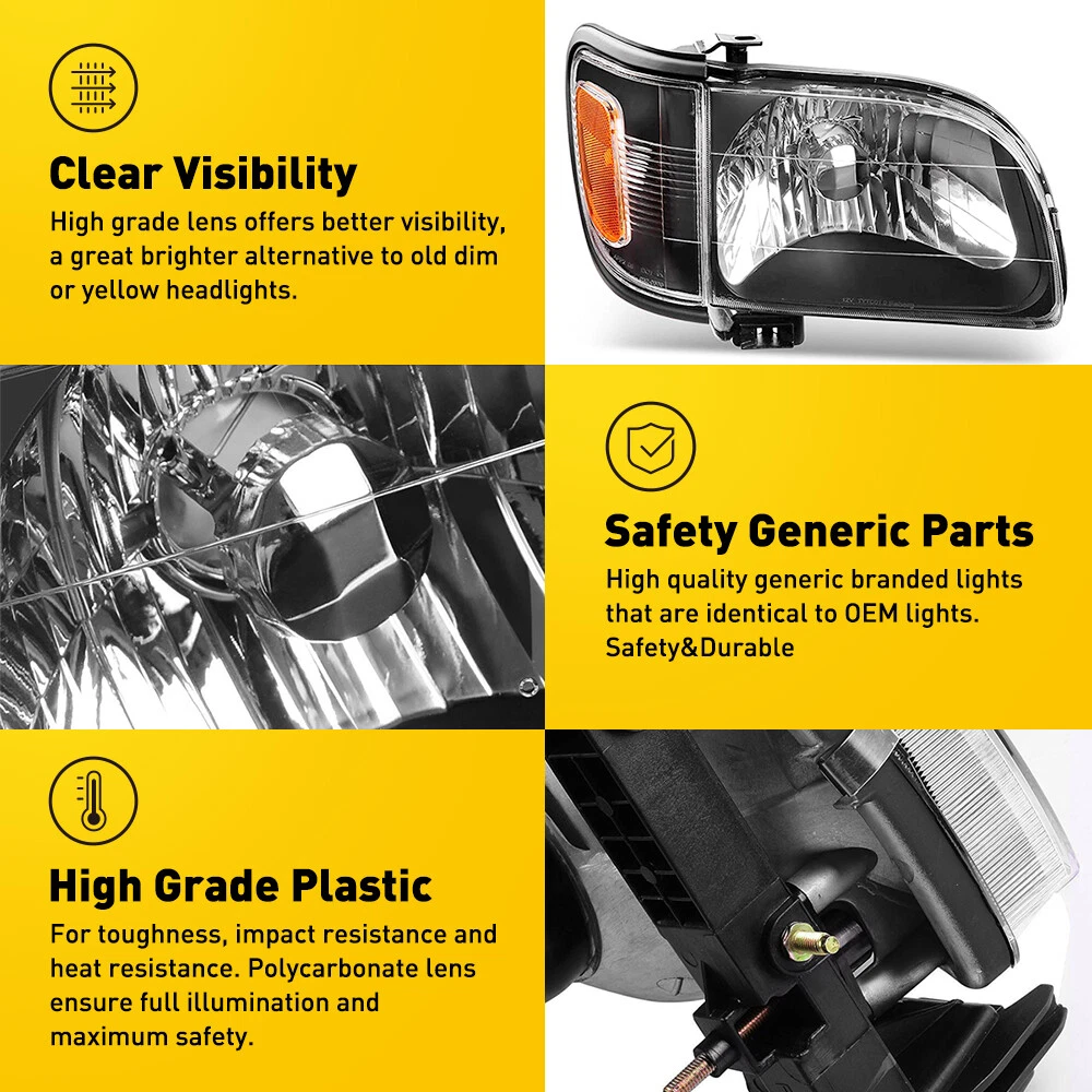 Pair for 2001-2004 Toyota Tacoma Clear Lens Halogen Headlights + Signal Lights
