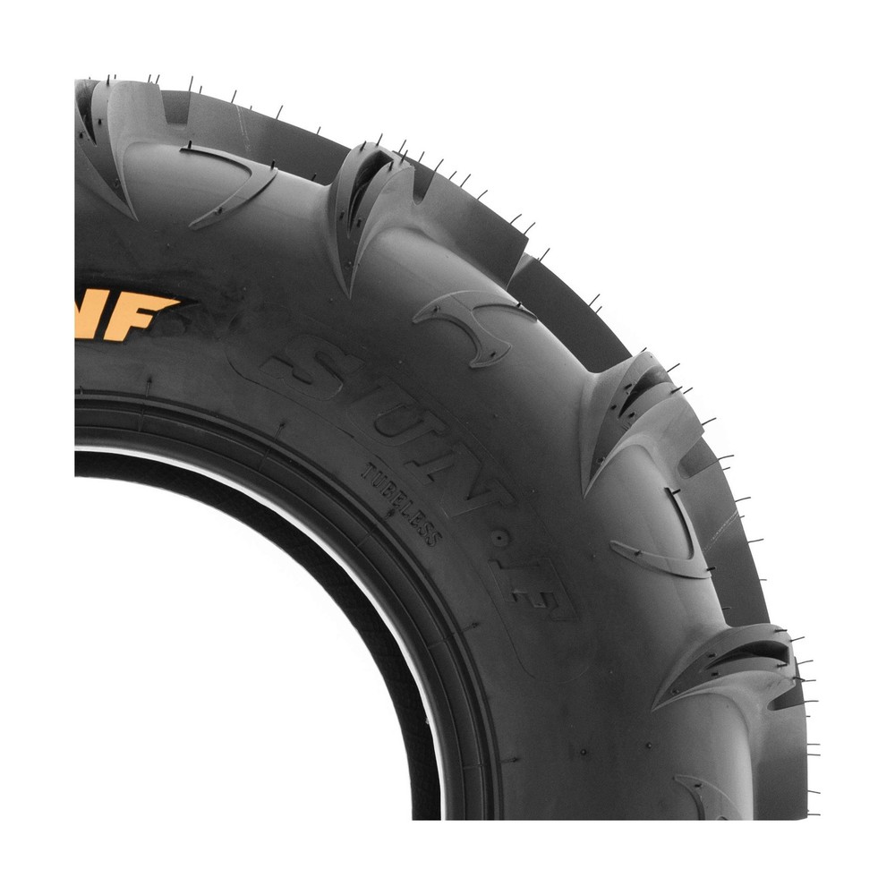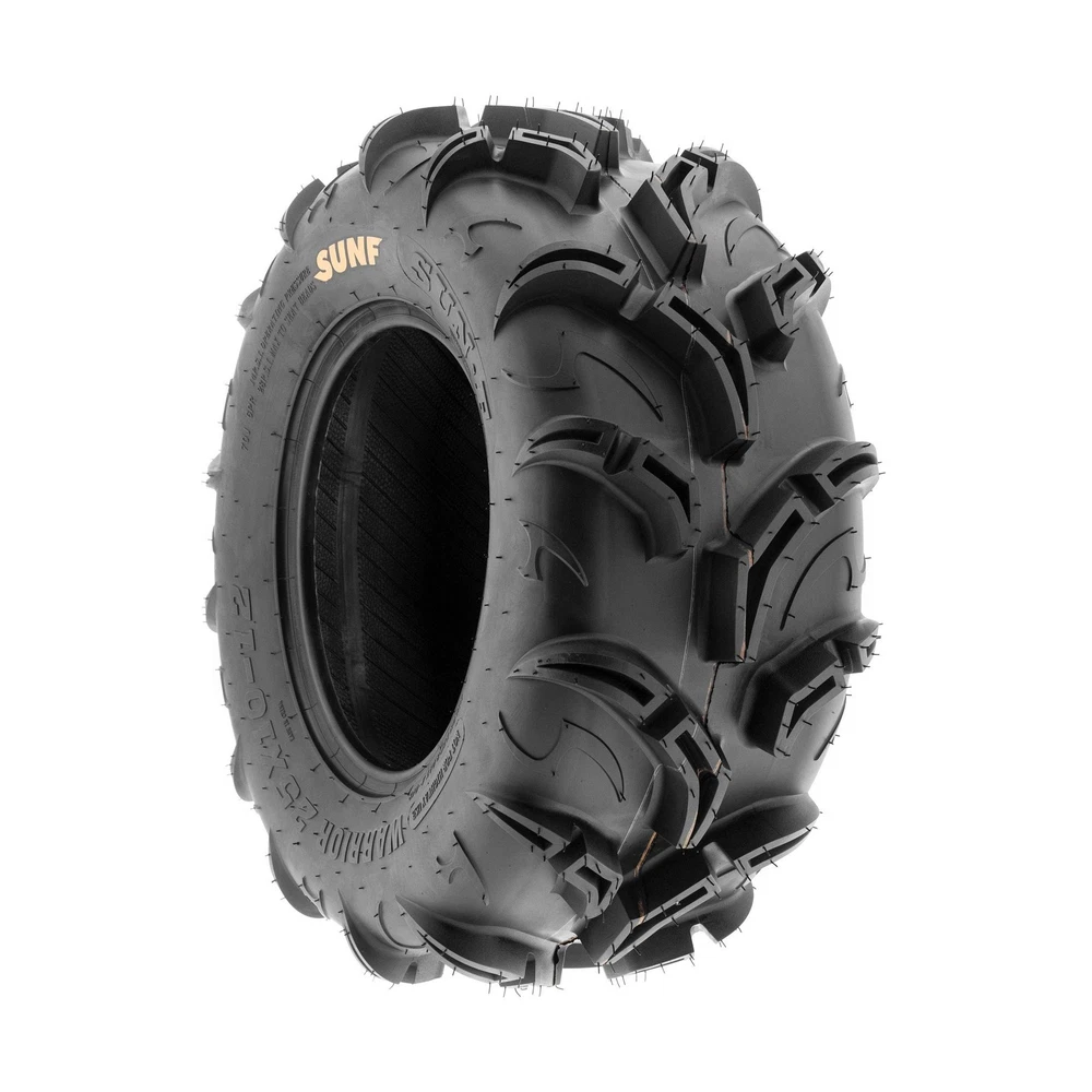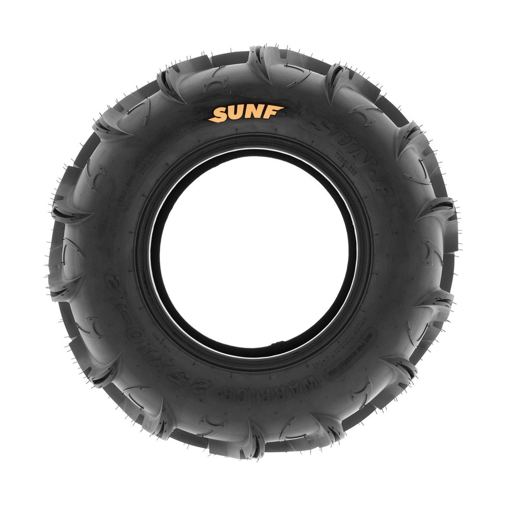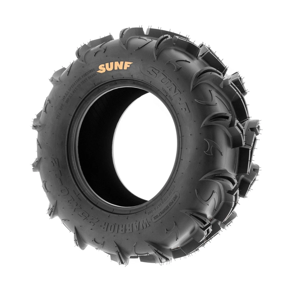 Pair of 2 SunF Warrior AT 26x11-12 ATV UTV Mud & Trail Tires, 6 PR, Tubeless A048 Description Model Description: The SunF A048 Warrior ATV Tire features an extremely aggressive pattern delivering grip deep mud like no other. The tread depth measures approximately 30mm deep. The pattern is an aggressive mud type with great clear out properties. The A048 Warrior is a 6 ply rated tire and has a 14-28 PSi rating making it suitable for use on a wide variety of machines including side by side and UTV's. For more details, see full description. If you have any questions or concerns, please contact us. Tire Specifications: Total Number of Tires: 2 Tire Size: 26x11-12 Tire QTY: 2 Rim Size: 12 x 9.0 Ply Rating: 6 Tire Diameter: 26 Tread Depth: 30 Max Load: 737 (335kg) Max PSI: 14 Tire Weight: 30 Rear Size: Rear QTY: 2 Rear Rim Size: Rear Ply Rating: Rear Diameter: Rear Tread Depth: Rear Max Load: Rear Max PSI: Rear Weight Features: Size: 26x11-12 | Total Number of Tires: 2 | Wheel/Rim Diameter: 12 in Loose Dirt and Mud Mastery: Engineered to excel on loose dirt and mud terrains, the A048 tire offers consistent and dependable performance for UTV and SxS riders seeking optimal traction in these challenging conditions. Durable 6 Ply Construction: Built with a robust 6-ply construction, the A048 tire is designed for durability, effectively resisting punctures, cuts, and impacts to withstand the demands of recreational riding and racing conditions. Shoulder Traction Technology: Equipped with advanced shoulder traction technology, the A048 tire ensures superior grip during turns and challenging maneuvers on various terrains, enhancing off-road control for recreational and racing enthusiasts. Sizes Ranging from 25 to 27 Inches: With sizes spanning from 25 to 27 inches, the SUNF A048 tire caters to a variety of UTV and SxS models, ensuring optimized traction and stability for various recreational and racing setups on loose dirt and mud terrains.Rim(s) NOT included. Product Details: Brand: SUNF Size: 26x11-12 Section Width: 11 Inches Load Capacity: 737 Pounds Tread Type: Directional Maximum Pressure: 14 Pound per Square Inch Tire Diameter: 26 Inches Item dimensions L x W x H: 26 x 22 x 26 inches Item Diameter: 26 Inches Item Weight: 60 Pounds Brand: SUNF Size: 26x11-12 Section Width: 11 Inches Load Capacity: 737 Pounds Tread Type: Directional Maximum Pressure: 14 Pound per Square Inch Tire Diameter: 26 Inches Item Diameter: 26 Inches Item Weight: 60 Pounds UPC: 842915187571 Construction Type: B Manufacturer: SunF Model: A048 Item Weight: 60 pounds Item model number: aNT-A048261112[x2] Manufacturer Part Number: aNT-A048261112[x2] Date First Available: August 7, 2018 Delivery We Do Not Ship Outside of the Continental US. Return Policy All items qualify for returns within 30 days of receipt. Buyer is responsible for return shipping on any item that is not damaged. Feedback We take our reputation seriously, we buy and sell online, so we understand the value of trust. If you are unsatisfied with your order, please contact us and we will work with you to resolve it to your satisfaction.