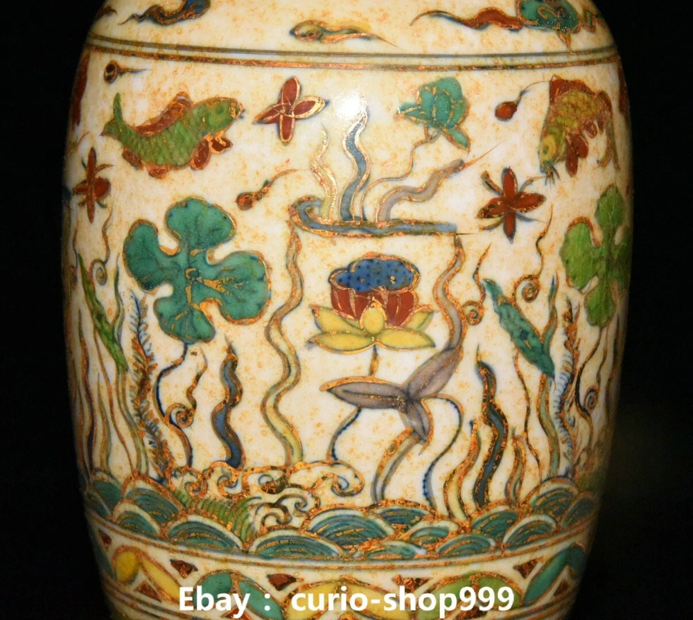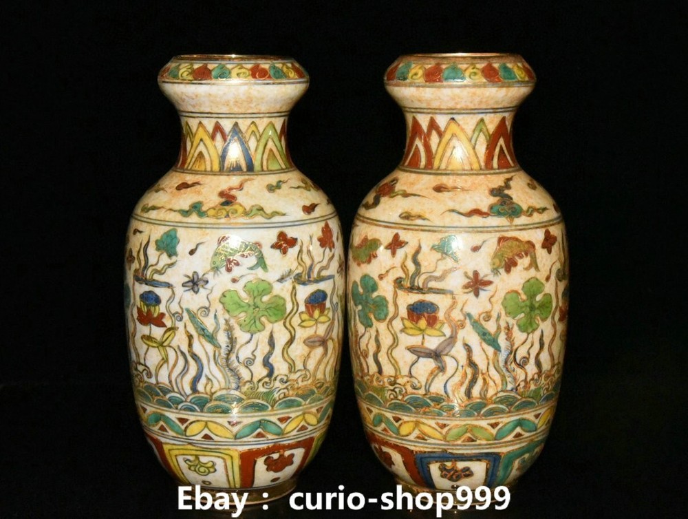 **** Welcome to our antique & Collectable Shop : Porcelain**** Description: Here is 9.5"Ming Chenghua Wucai Porcelain Gilt Lotus Flower Fish Animal Bottle Vase Pair. It is in good condition, and was created by skilled craftsmen in traditional style with fine handcrafts.This is a great piece of valuable collection, a valuable personal alter or a very good present. the handwork is very fine with incredible detailling. Don't miss out this chance to get it.Wish you good luck! . Material : Wucai Porcelain Gilt Size : Heigh t 9.5 Long 5.3 B readth 5.3 (inch) Condition Perfect Condition. Perfect, with no scratches, flaws or repairs. Weight: 3.1 KG----included the weight of packing materials Shipping cost to all over the world countries in Free Honored Customers: We are selling the collectibles products and crafts in Beijing ,China since 1993 and collected them all over the world all the time . In our shop the bronze sculpture, animal, vase, urn, flowerpot,Incense Burner.Table chair sets. Militaria goods. buddha statues, Bodhisattva Statues, Buddhist Ritual Items etc is our speciality .Many of the items we sell come from our own personal collection and have been in our family for a very long time .My great-grandfather was the first in this family to start collecting art & antiques when he still lived in San Xi and Tibet around 1922 ,some of the paintings he once collected can now be seen in museums around the globe.We won't make money from t he shipping cost, if you dislike the item when you receive it,we can refund all of your money to you within thirty days. Please confidence for bidding . We recommend the combine shipping and offer you an big price discount if you order more items together ! 2025.02.09 四 号