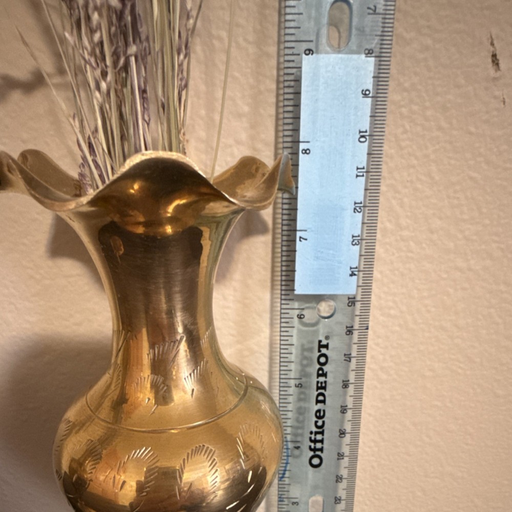 Pair of Brass Engraved Round Vases Gold Metallic 10 in Made in India