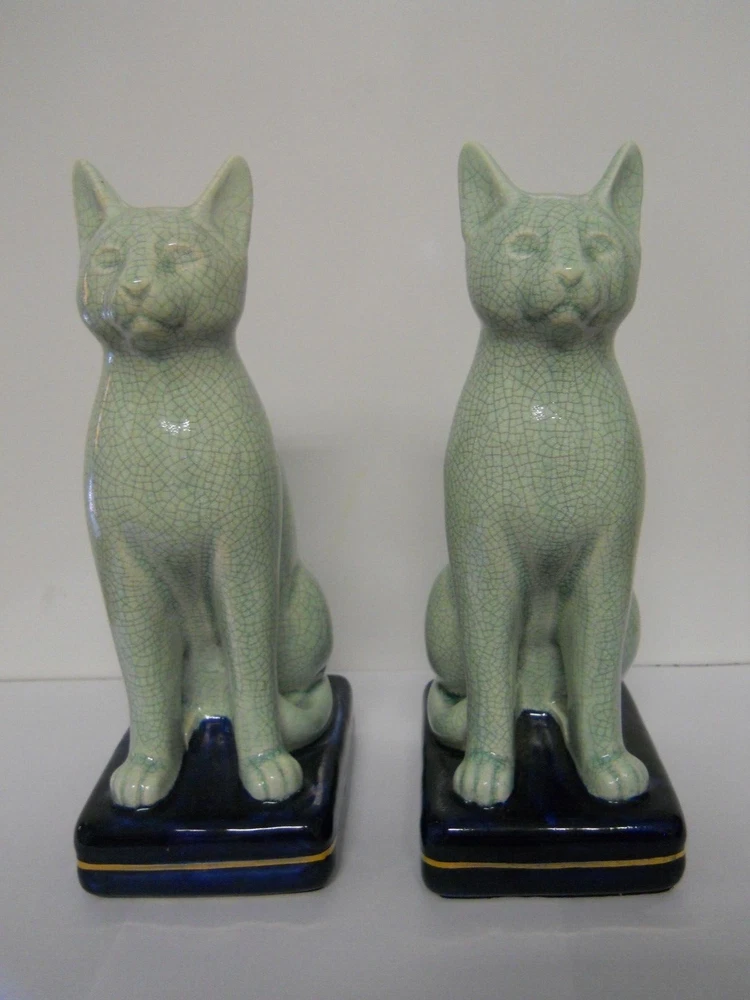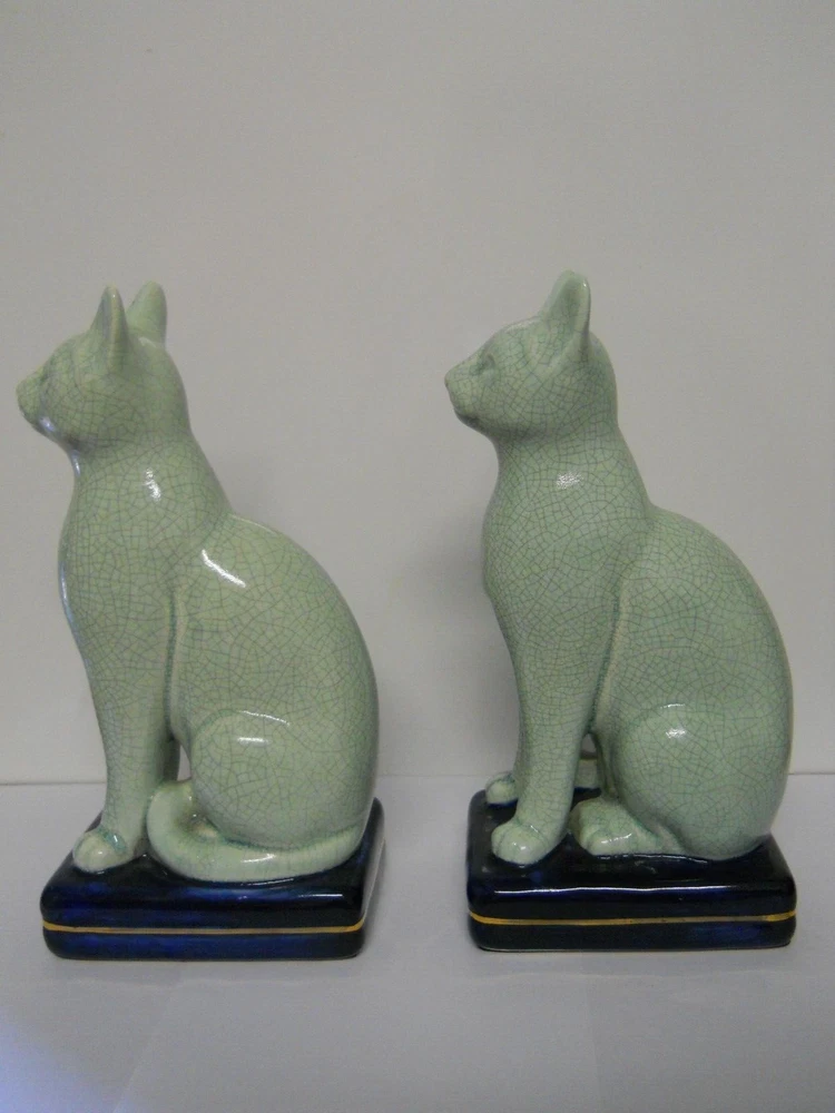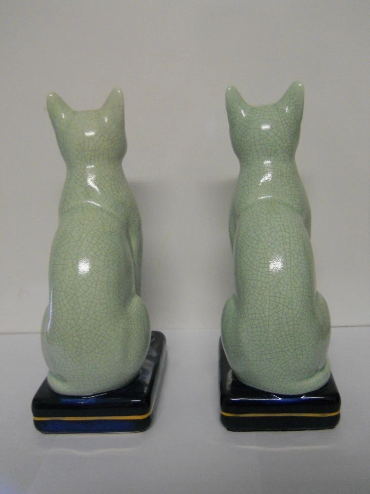 You are bidding on: Pair of Vintage Japanese Ceramic Staffordshire Style Cats by Ibrasco Japan Description Condition: In vintage condition. This is a Pair of Vintage Japanese Ceramic Staffordshire Style Cats by Ibrasco Japan These cats stand at 8" tall. The bases measure 3" x 4" These are made in Japan ***************************************************************************************************** PLEASE READ: I buy mostly estates, close outs, shelf pulls, and auction items. As the history of the item is not always known. I will describe all of my items listed to the best of my ability, if there are any flaws to the item it will be noted in the listing and photos of the flaw shown. At times I may miss a flaw, as I am only human. Please contact me and I will make it right and make sure that you are happy with you interaction and purchase from Big Man Tim. See photos for details and ask all questions before purchasing. "FREE SHIPPING" Thank you for shopping in my store. Check out the other items in my eBay Store! HAPPY BIDDING 050324/TM warehouse