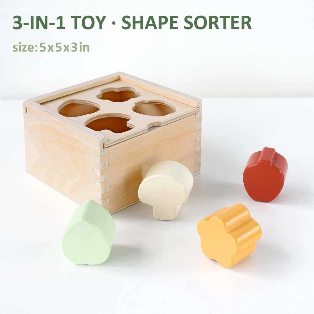 PairPear Educational Toys Set 3 in 1 - Wooden Toys Shape Sorter Cubes - Activ...