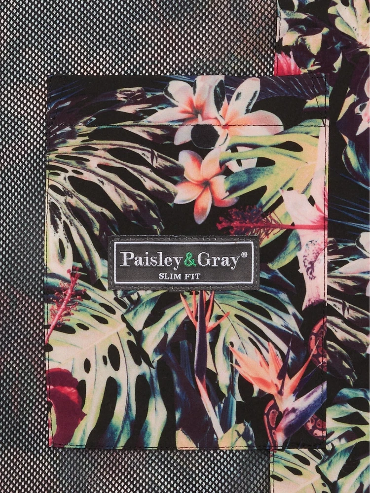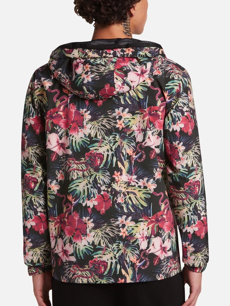 Condition : New with tags Details : Weather the elements in island style with this tropical-inspired rain jacket by Paisley & Gray. Styled with a Slim Fit and hood, it features vibrant blooms interspersed with slithering snakes to give it just the right amount of edge Size : Large Pit to pit: 23" Length: 29"