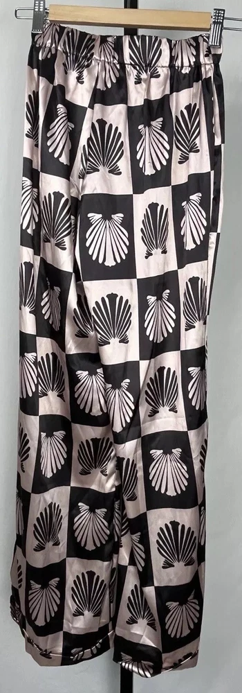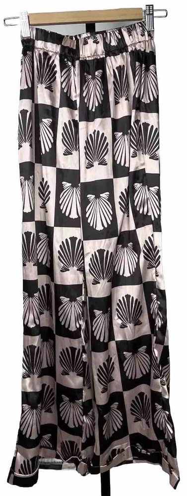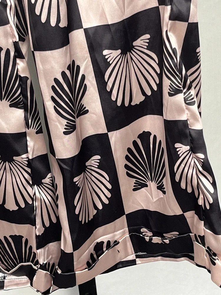 Pajama Pants Small Pink Black Shell PJ Sleepwear Hi Waist Wide Leg Cuff Seashell