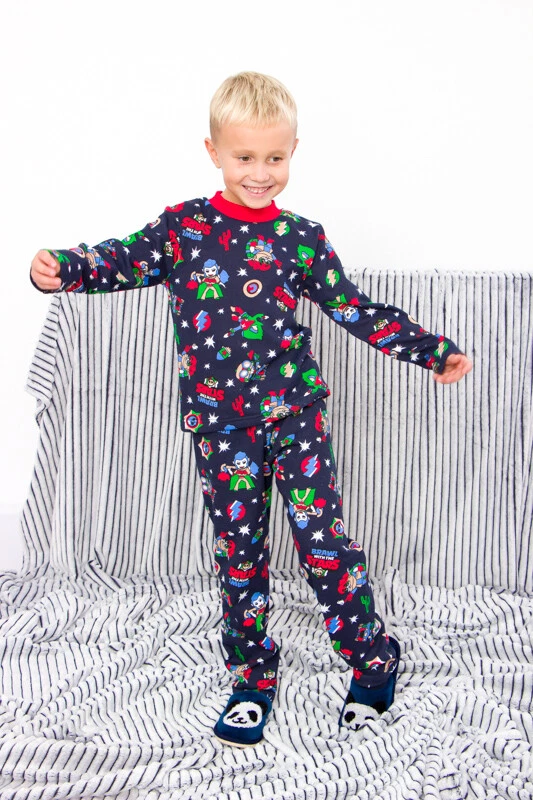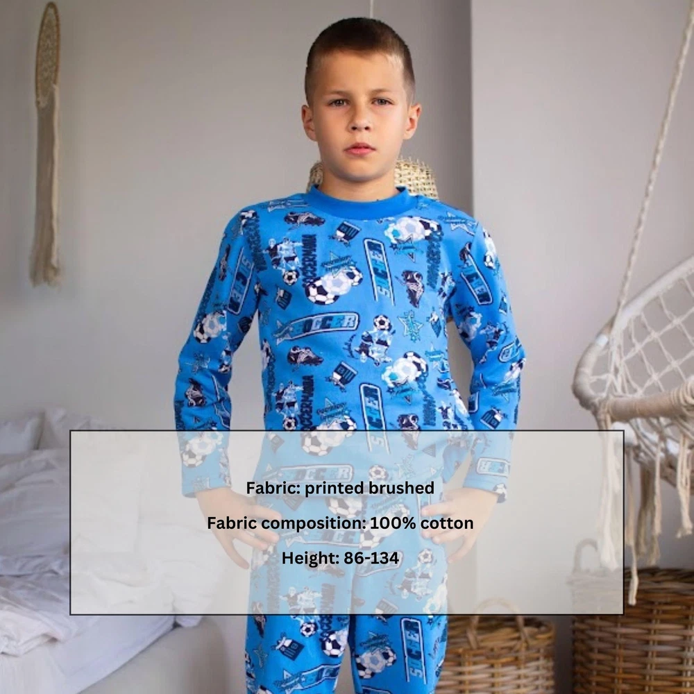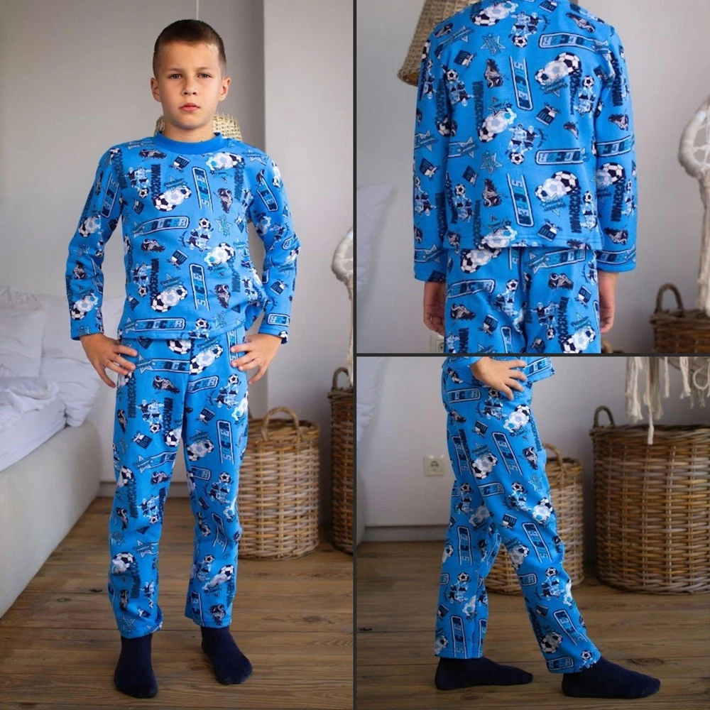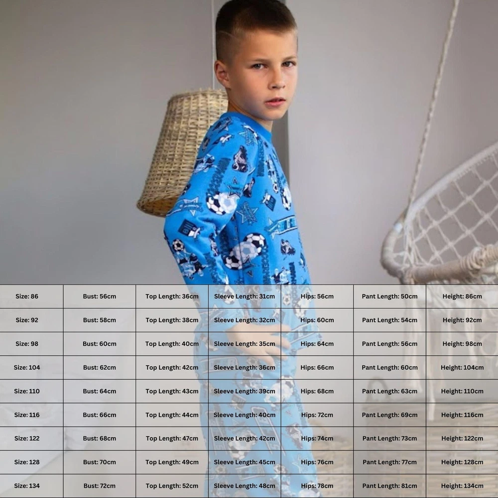 Material: Jersey Brushed Fleece General size: 86-134 Seazon:Winter Pattern:Graphic Print Clothing decoration:no decoration Size: 86, Bust: 56cm, Top Length: 36cm, Sleeve Length: 31cm, Hips: 56cm, Pant length: 50cm, Height: 86cm Size: 92, Bust: 58cm, Top Length: 38cm, Sleeve Length: 32cm, Hips: 60cm, Pant length: 54cm, Height: 92cm Size: 98, Bust: 60cm, Top Length: 40cm, Sleeve Length: 35cm, Hips: 64cm, Pant length: 56cm, Height: 98cm Size: 104, Bust: 62cm, Top Length: 42cm, Sleeve Length: 36cm, Hips: 66cm, Pant length: 60cm, Height: 104cm Size: 110, Bust: 64cm, Top Length: 43cm, Sleeve Length: 39cm, Hips: 68cm, Pant length: 63cm, Height: 110cm Size: 116, Bust: 66cm, Top Length: 44cm, Sleeve Length: 40cm, Hips: 72cm, Pant length: 69cm, Height: 116cm Size: 122, Bust: 68cm, Top Length: 47cm, Sleeve Length: 42cm, Hips: 74cm, Pant length: 73cm, Height: 122cm Size: 128, Bust: 70cm, Top Length: 49cm, Sleeve Length: 45cm, Hips: 76cm, Pant length: 77cm, Height: 128cm Size: 134, Bust: 72cm, Top Length: 52cm, Sleeve Length: 48cm, Hips: 78cm, Pant length: 81cm, Height: 134cm Discover ultimate comfort and style with our Boys' Warm Pyjama Set! Made from high-quality materials, this cozy pyjama set ensures a comfortable and restful night's sleep for your little one. With its soft fabric and impeccable design, our pyjama set provides warmth and comfort during colder nights. The set includes a long-sleeved top and matching bottoms, perfect for lounging at home or bedtime. Available in various sizes, our boys' pyjama set offers a snug fit for every child. Treat your little prince to a cozy night's sleep with our warm pyjama set! Shop now!