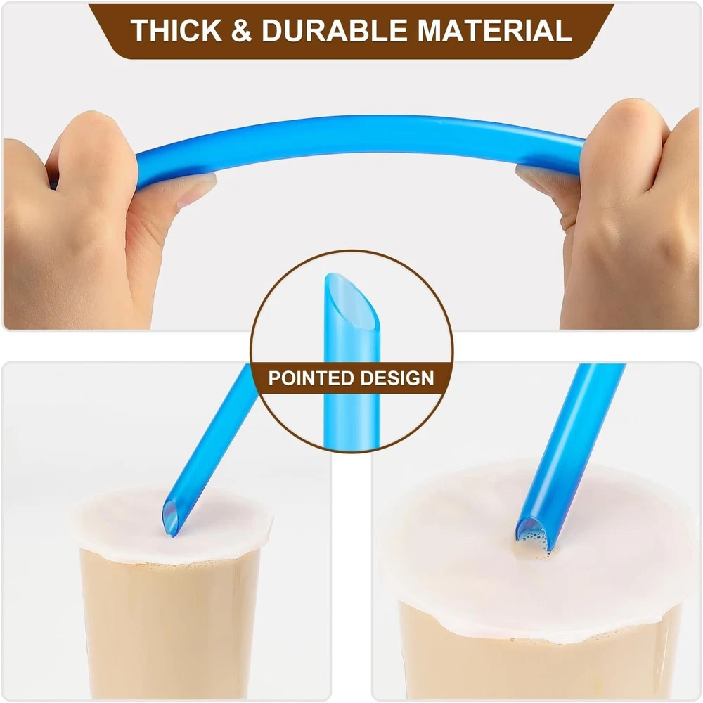 Model 2 BRAND NEW FOOD-GRADE & BPA FREE MATERIAL - Distinguish from disposable straws, we use reusable straws many times every day. In order to guarantee safe drinking, Hiware do our best to use healthy and non-toxic food grade materials, please feel free to use them in hot or cold beverage. BEST SIZE FOR BOBA & SMOOTHIES - 8 pcs multi-colors straws + 2 cleaning brushes. 10.5" long and 0.4 Inner Diameter / 0.47 Outside Diameter. Extra wide straws are the best ideal size for fat boba/bubble tea (tapioca pearls, boba pearls), frozen smoothies, thick milkshakes, jelly, jumbo drinks and more homemade thick drinks [UPGRADED] - ANGLED TIPS - We have summarized many dissatisfaction from customers who have bought boba straws without angled tips. Hiware upgrades reusable plastic straws with angled tips that helps puncture the tops of bubble tea THICK PLASTIC & DISHWASHER SAFE - Besides food-grade material, these smoothie straws are made of thick bpa-free plastic. Dishwasher safe and hand washing efficiently with 2 cleaning brushes 100% SATISFACTION SERVICE - We believe that our high quality reusable straws will exceed your expectations. If you're not completely satisfied simply, don't hesitate to contact us and we will offer you a satisfied solution within 24 hours Model 1 Food-Grade & Bpa Free Material - Distinguish from disposable straws, we use reusable straws many times every day. Angled Tips - Pointed mouth design, make you very convenient when drinking Boba milk tea and smoothies, also the angled tips helps you puncture the tops of bubble tea Best For Boba & Smoothies - Approx 10 Inch Length and 0.4 Inch Inner Diameter / 0.47 Inch Outside Diameter. Extra Wide Reusable Smoothie Straws, Great for Bubble Tea, Boba Tea (tapioca pearls, boba pearls) ,thick Milkshakes and more homemade thick drinks. Easy To Clean : Wash the bubble tea straws easily with the long straw brush cleaners included in your package to keep the straws clean and hygienic after each use. Get the food remnants out by easily sliding the brushes in and then rinsing. The dishwasher safe materials makes it convenient and time saving. 100% Satisfaction Service - We believe that our high quality reusable straws will exceed your expectations. If you're not completely satisfied simply, don't hesitate to contact us and we will offer you a satisfied solution within 24 hours THANK YOU