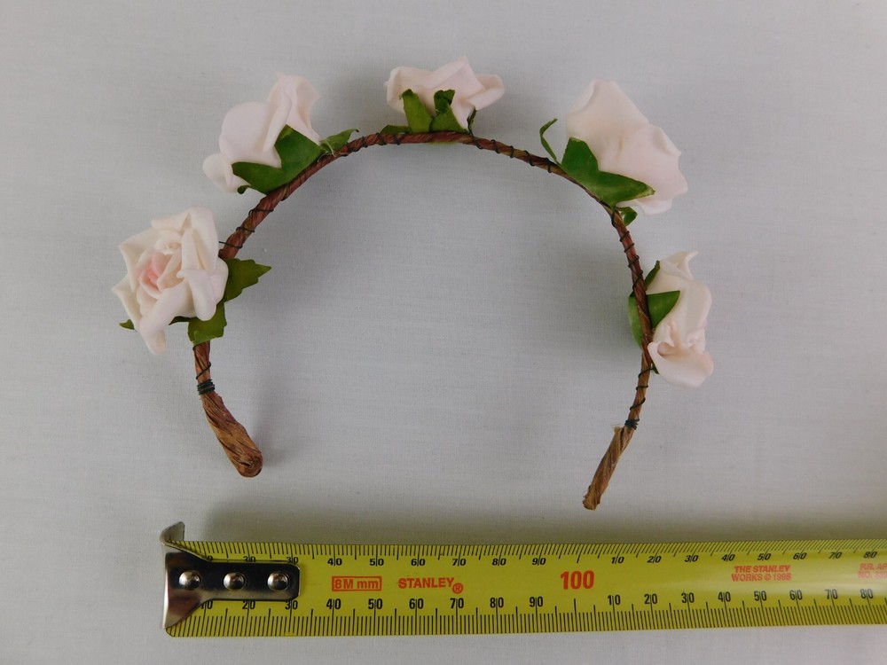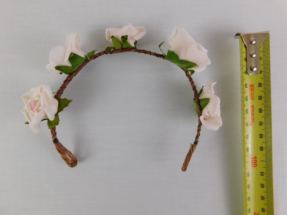 Add a touch of fairy magic to your hairstyle with this handmade headband tiara. Featuring a beautiful pale pink rose made from faux twigs and paper fibre, this hair accessory is perfect for weddings, parties, or even casual wear. The delicate wire design makes it suitable for all hair types and the eco-friendly materials make it a guilt-free purchase. This fairy flower headband tiara is the perfect addition to any outfit, adding a whimsical touch to your look. The natural twig and paper fibre materials make it a unique and one-of-a-kind piece, while the beautiful pink rose adds a pop of colour. Whether you're dressing up for a formal occasion or just want to add some sparkle to your day-to-day style, this handmade hair accessory is sure to turn heads.