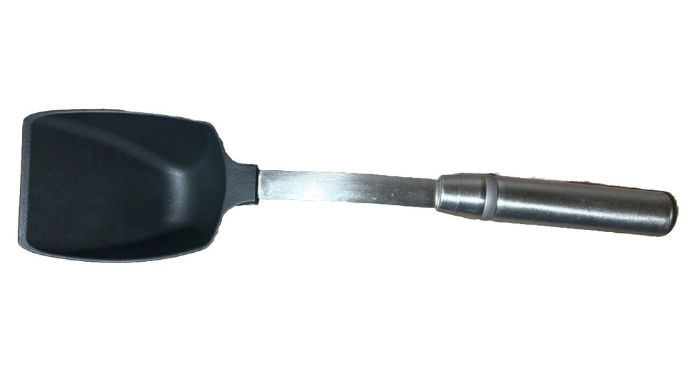Elevate your kitchen arsenal with the Pampered Chef Scoop & Serve Spatula, a versatile tool designed for effortless scooping and serving. Crafted from durable nylon with a no-roll stainless steel handle, this 14-inch spatula is a perfect addition to your cookware collection. Its heat-resistant feature ensures longevity and ease of use, making it a reliable companion for all your culinary adventures. The spatula's solid black color and sleek design provide a touch of elegance to your kitchen. It's a single-piece set, which means you'll have a complete tool without the hassle of juggling multiple pieces. Ideal for everyday use or special occasions, this spatula is a must-have for anyone who loves to cook and wants the job done with style and efficiency. R10431-12-18.13.3-19