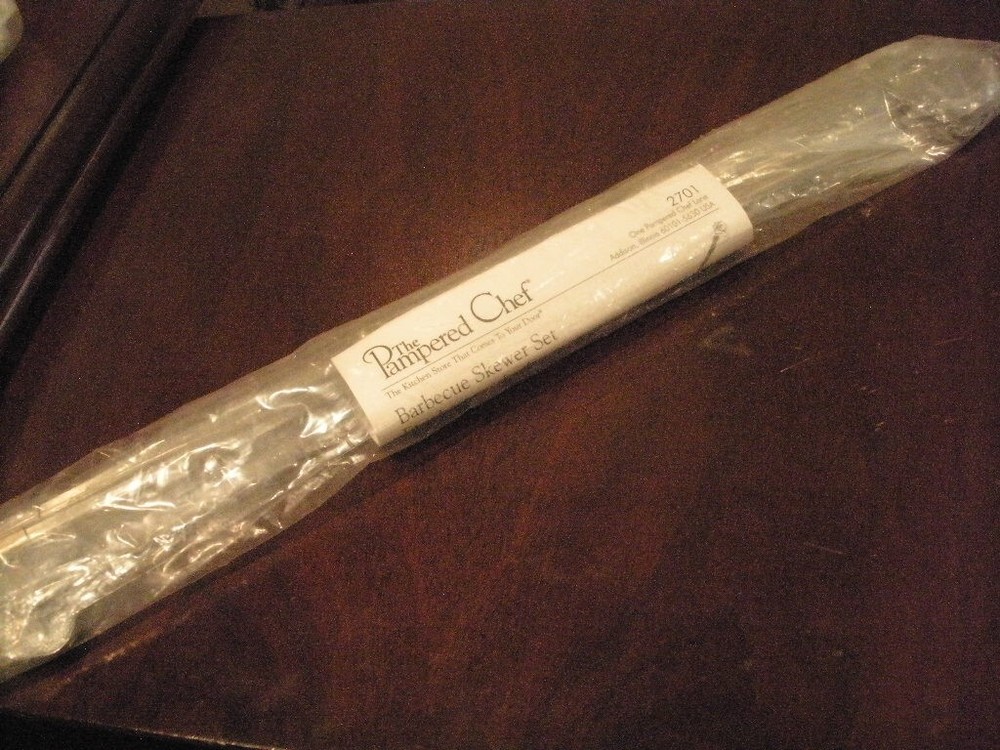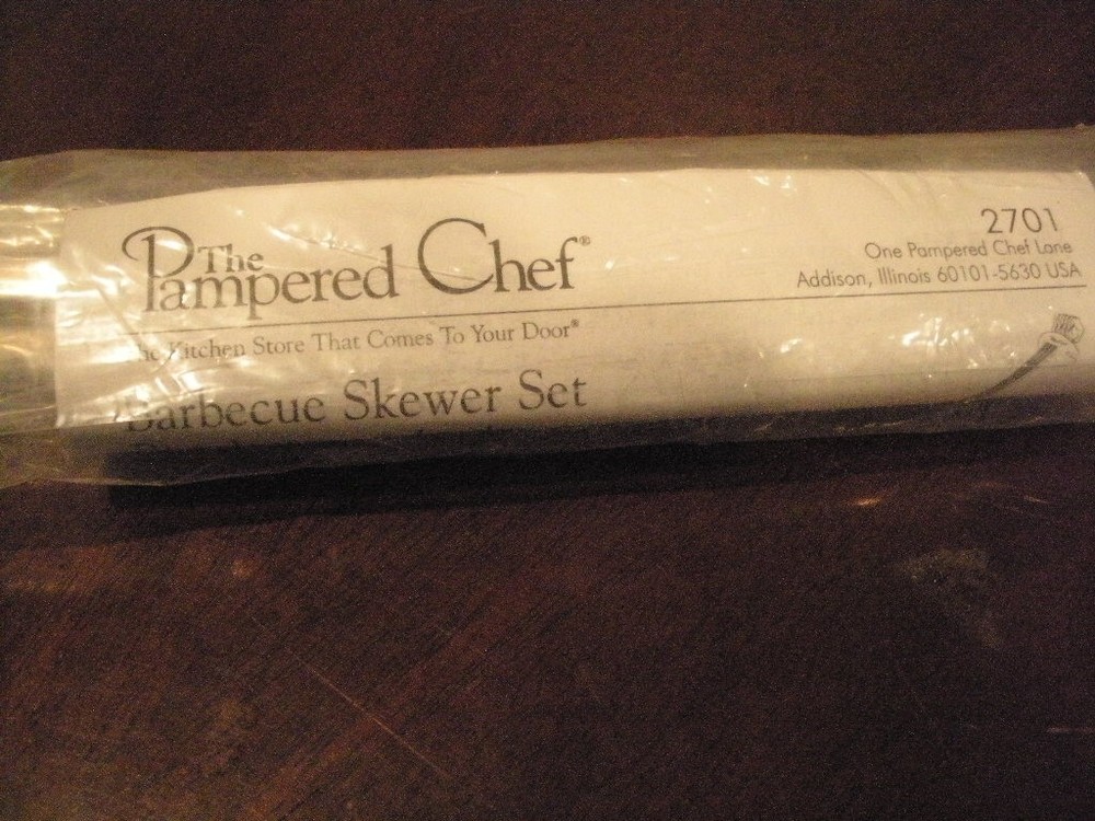 The Pampered Chef Skewer Set of 4 #2701 is a stylish and durable barbecue accessory designed for outdoor cooking. Made of stainless steel with a silver metallic finish, these skewers are medium in size and feature a convenient food slider for easy handling. The set includes 4 reusable skewers that are easy to clean, dishwasher safe, and rust resistant, making them a practical and versatile addition to any outdoor cooking equipment. With a sleek design and high-quality construction, these skewers are a must-have for any backyard chef.