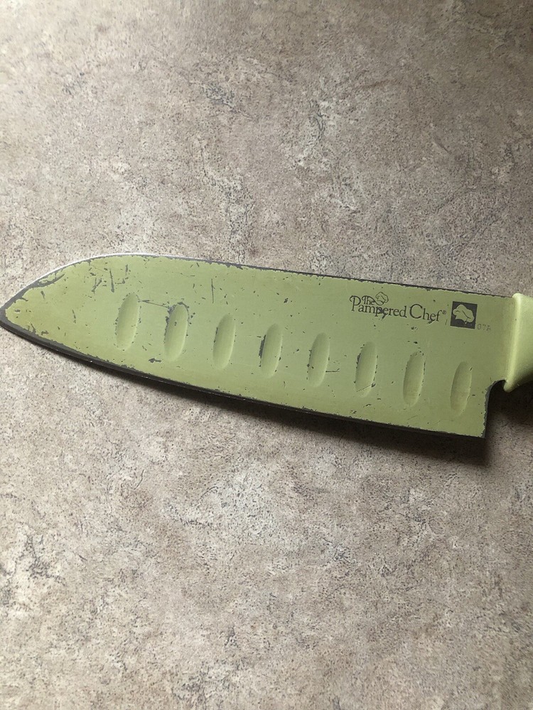 Pampered Chef Color Coated Santoku Knife GUC shows wear. No outer protective cover. Check out our other auctions. We combine shipping on multiple purchases IF ABLE TO. Please ask prior to bidding if an item(s) can be combined. As always, all my items come from my pet & smoke free home. I ship all items with care. Payment is due within 4 days of auction ending date . **Please note, I can no longer ship to APO/FPO/AA addresses** I only ship within the United States.