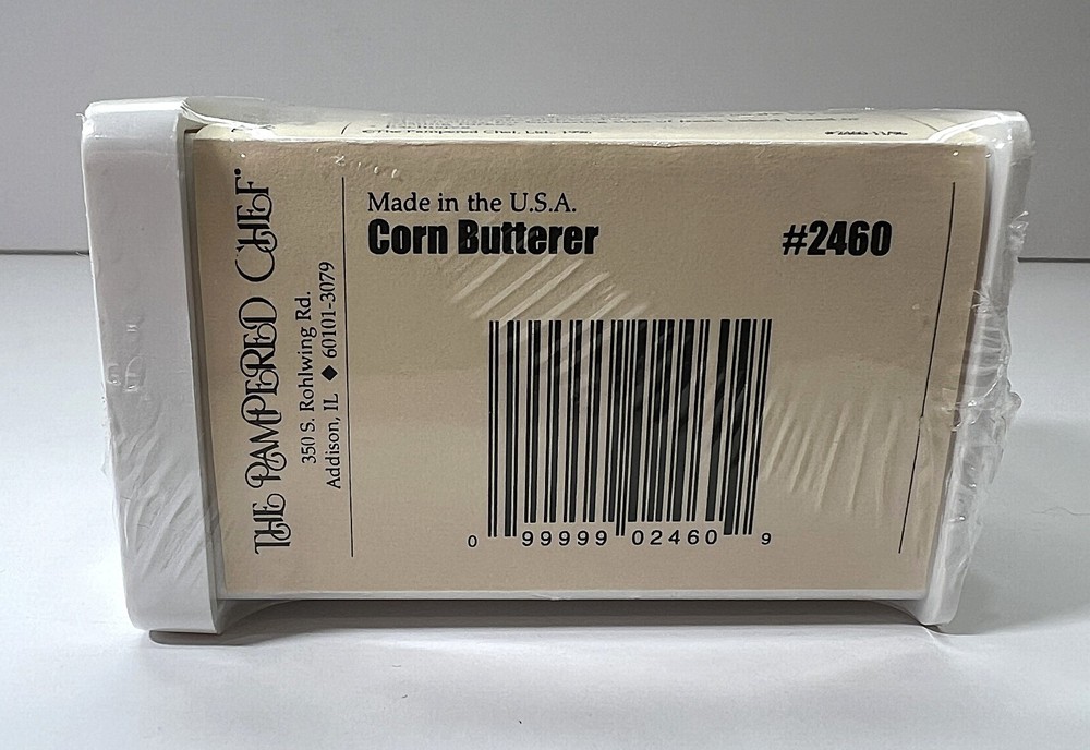 MPN: 2460 Color: White UPC: Does not apply Material: Plastic Country/Region of Manufacture: United States gtin13: Does not apply Brand: The Pampered Chef Item Height: 3 in Type: Corn Butterer Model: The Pampered Chef 2460
