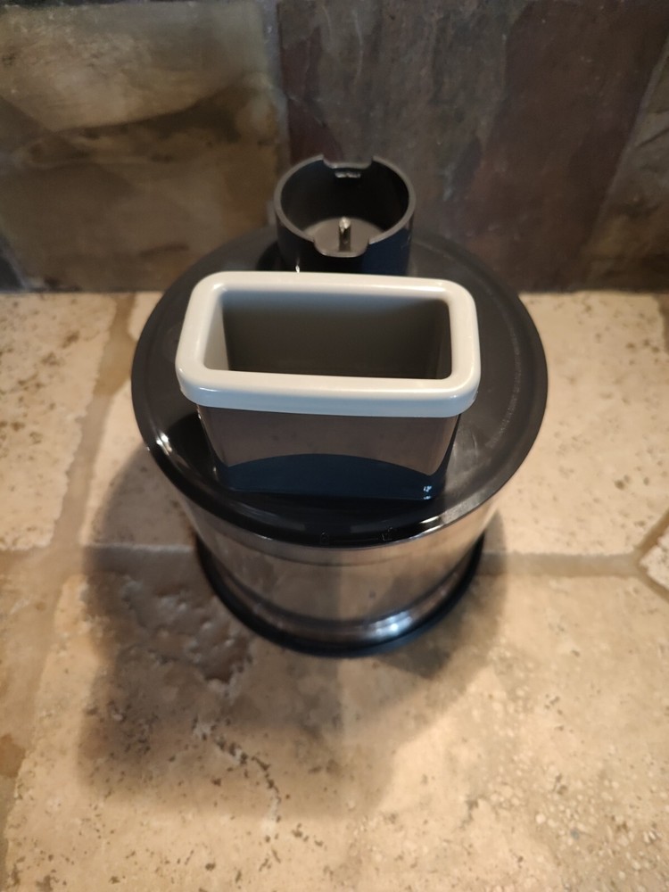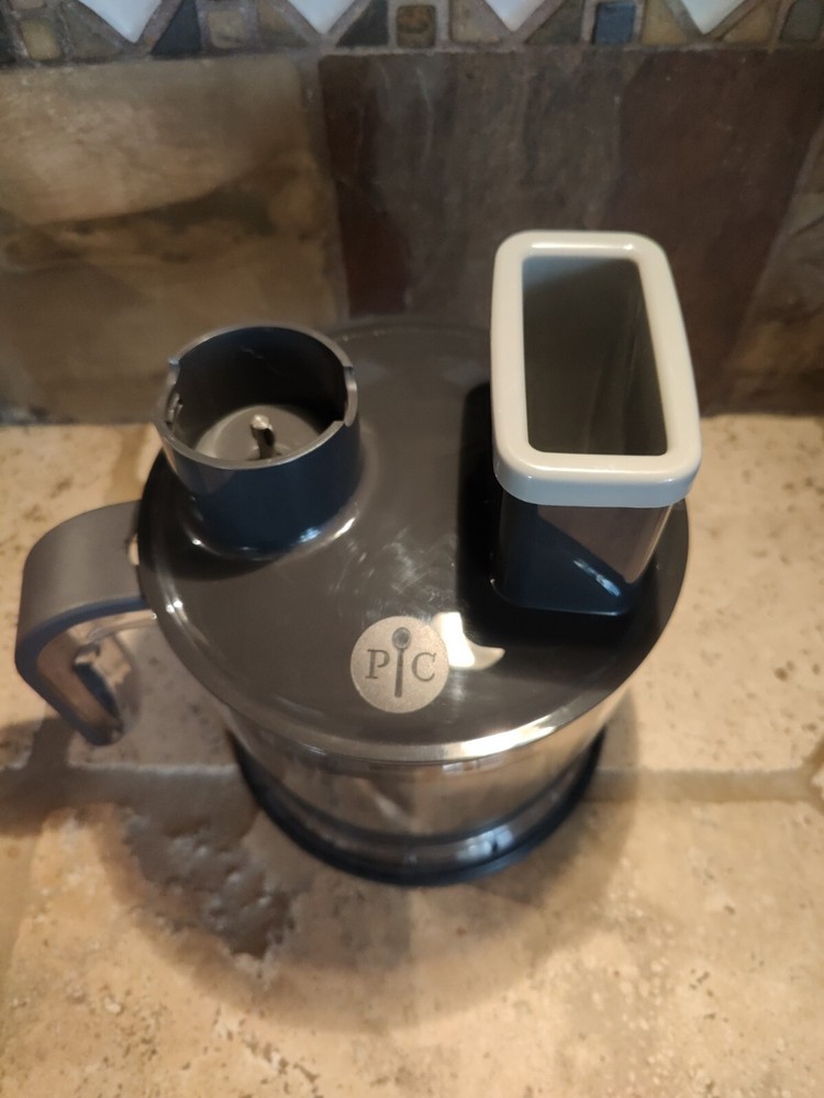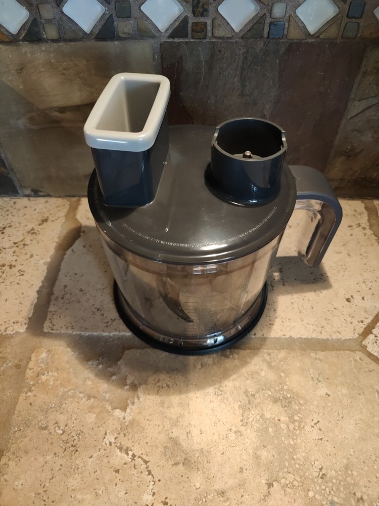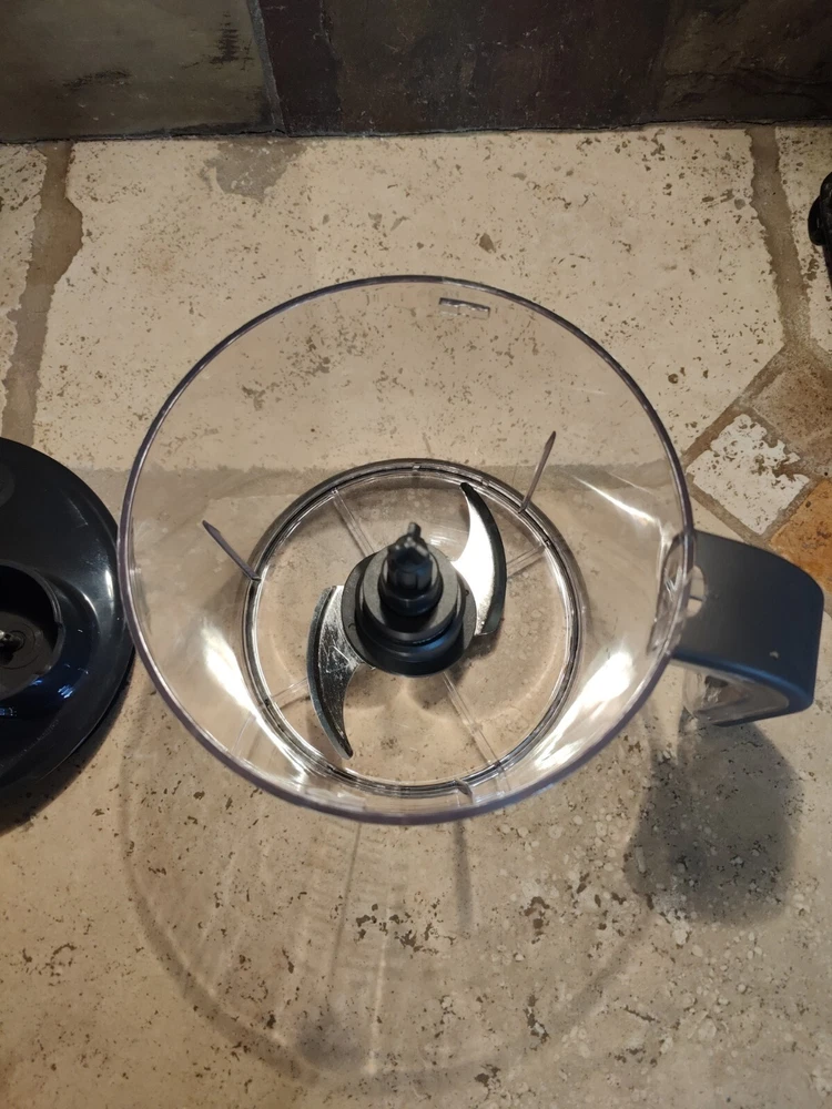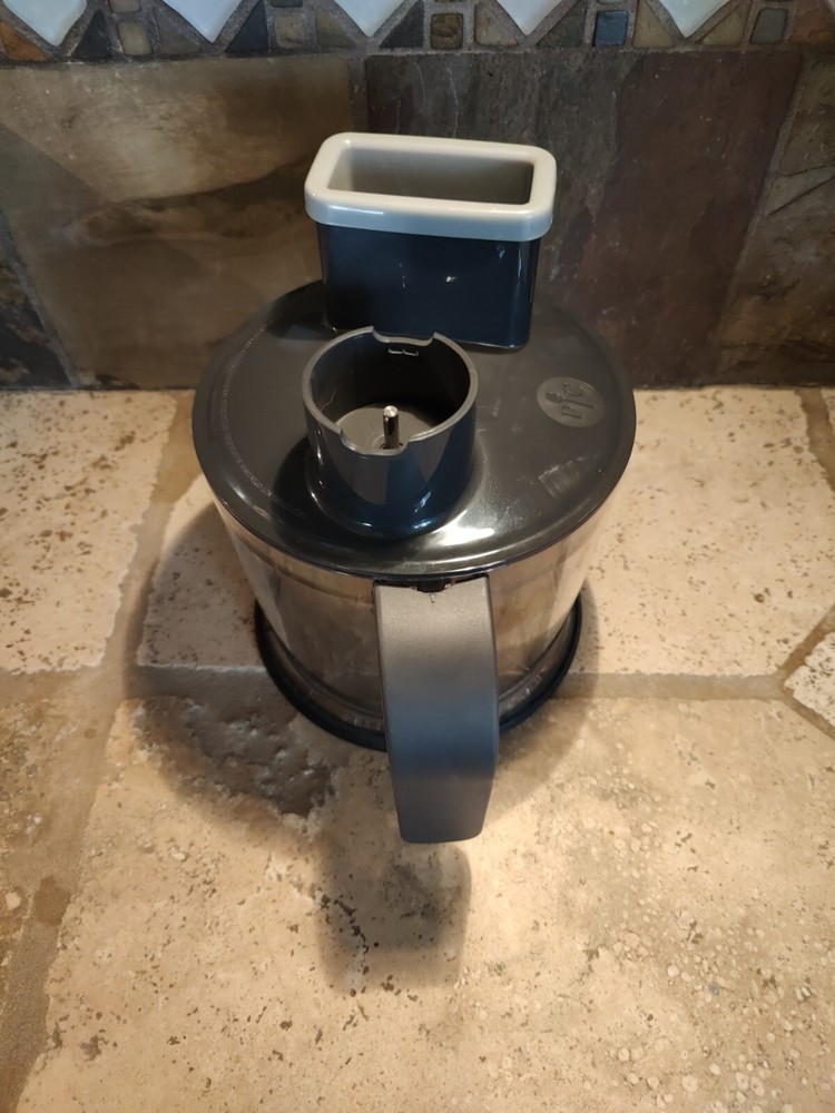 The Pampered Chef 100272 Flex Plus REPLACEMENT 6 Cup Food Processor container is the solution to your damaged piece. With a 6-cup capacity, this food processor is a versatile kitchen tool for chopping, blending, and processing ingredients. This is preowned. I used it one time.