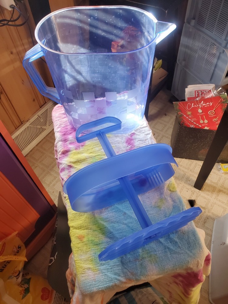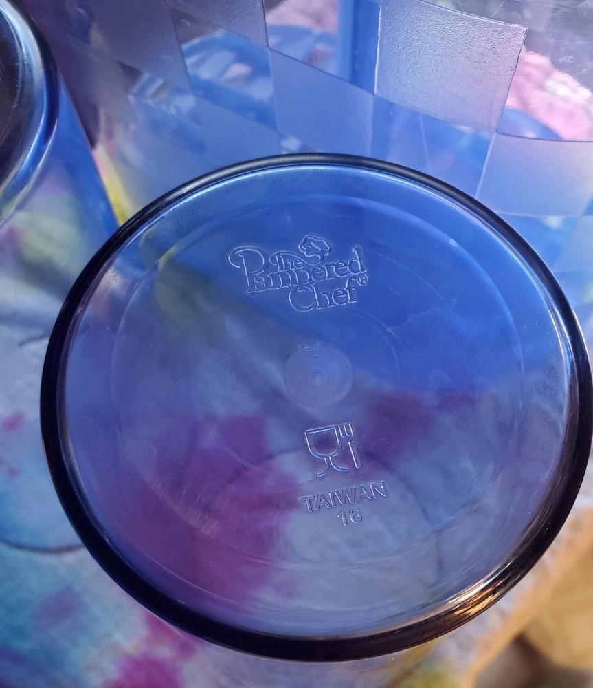 MPN: 2273, 2285, 2283 Type: Pitcher Brand: Pampered Chef Features: Tumblers Finish: Glossy Occasion: All Occasions Capacity: 1 Gallon Pattern: Checked Set Includes: Pitcher Material: Acrylic Color: Blue