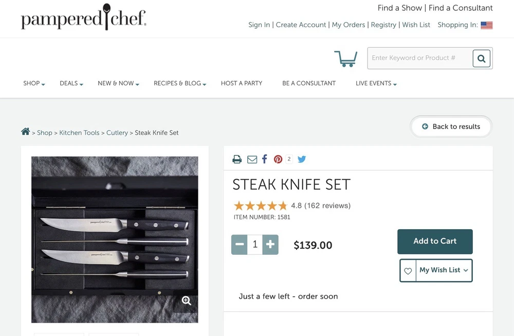 Pampered Chef Steak Knife Set in Great Condition with Sharp Blades