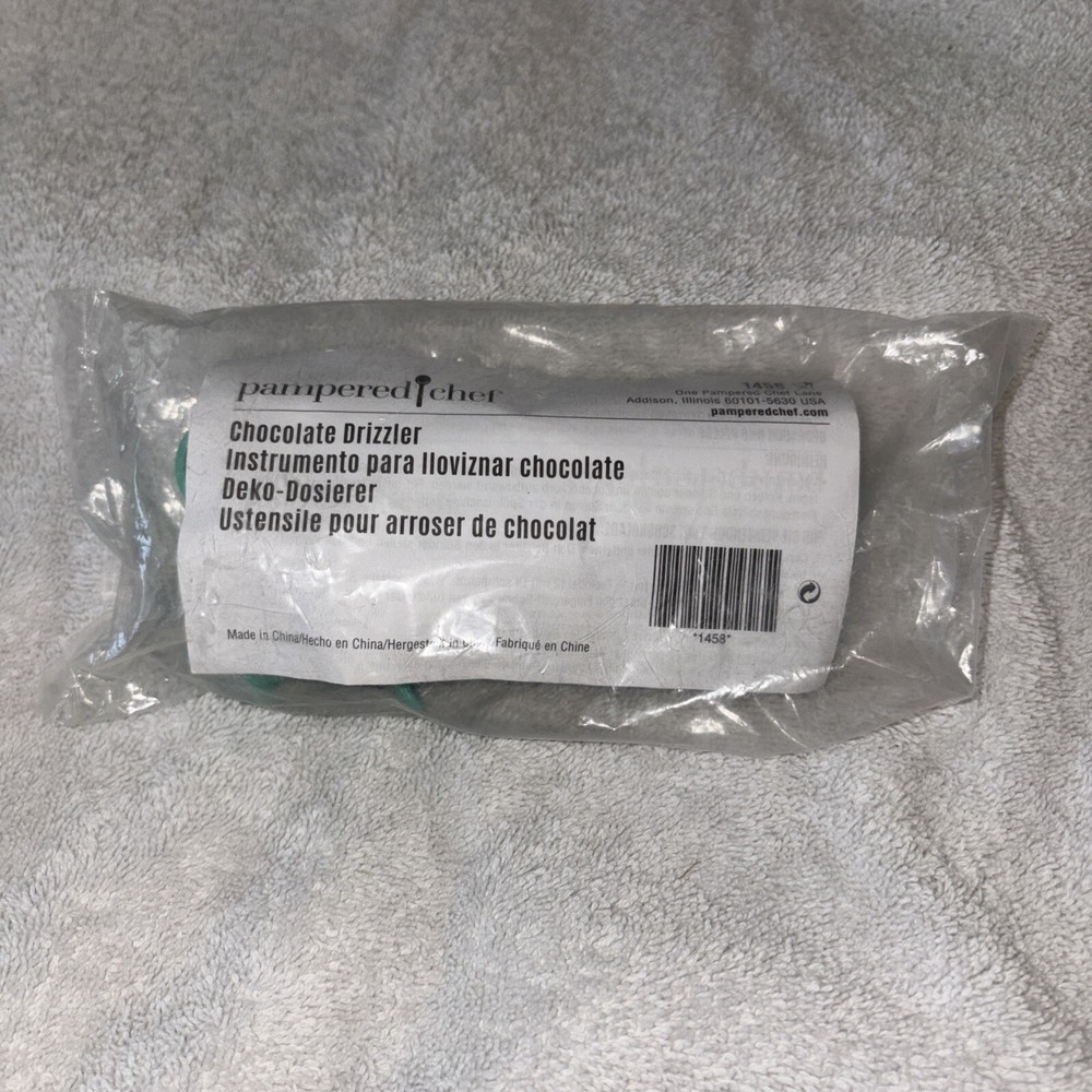 Enhance your baking experience with the Pampered Chef Chocolate Drizzler Tool, a must-have for any chocolate enthusiast. Designed for versatility and ease of use, this teal green drizzler, model #1458, is perfect for adding that special touch to your desserts, whether you're decorating cakes, cupcakes, or candies. Crafted from durable plastic, the tool is part of Pampered Chef's reputable line known for quality and longevity. Its sleek design ensures comfort and precision while creating intricate designs or simple accents on your sweet treats. Ideal for both professional bakers and home chefs, this chocolate drizzler is a sealed package assurance of freshness and performance.